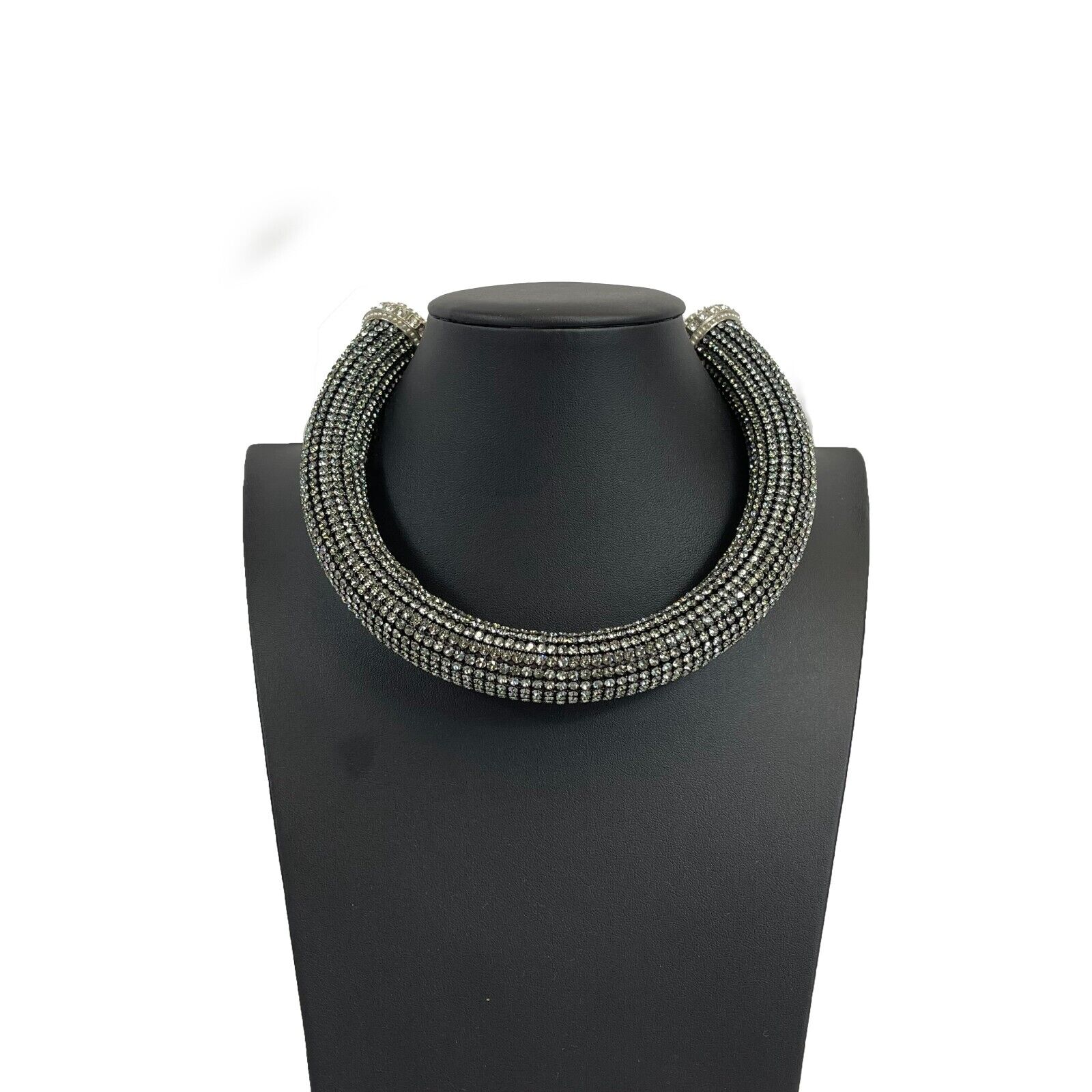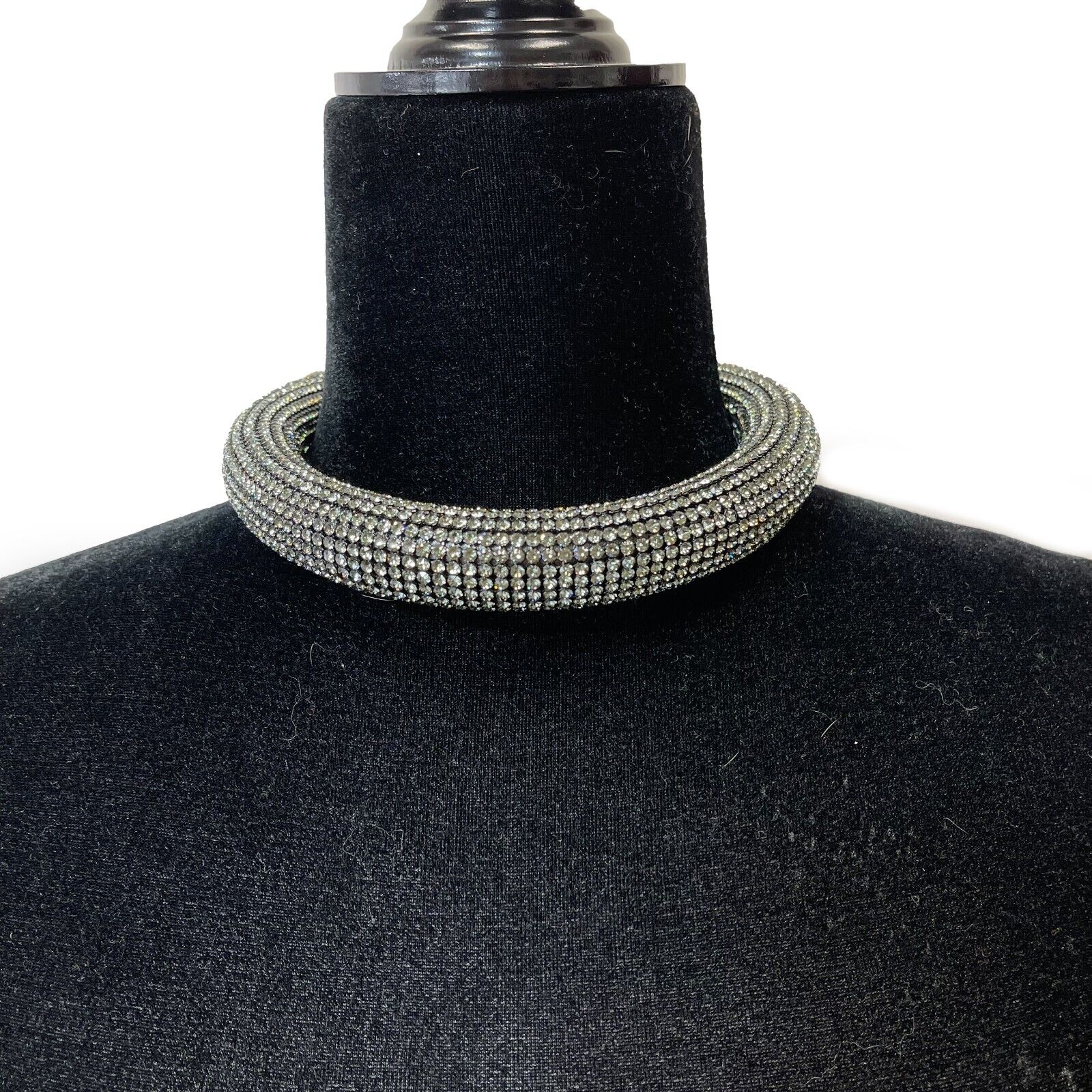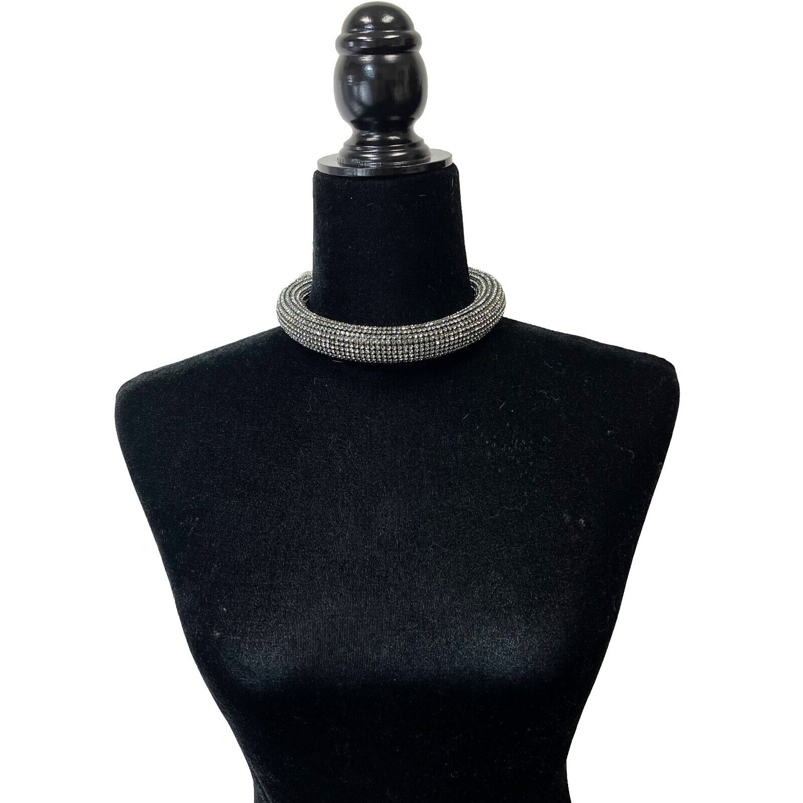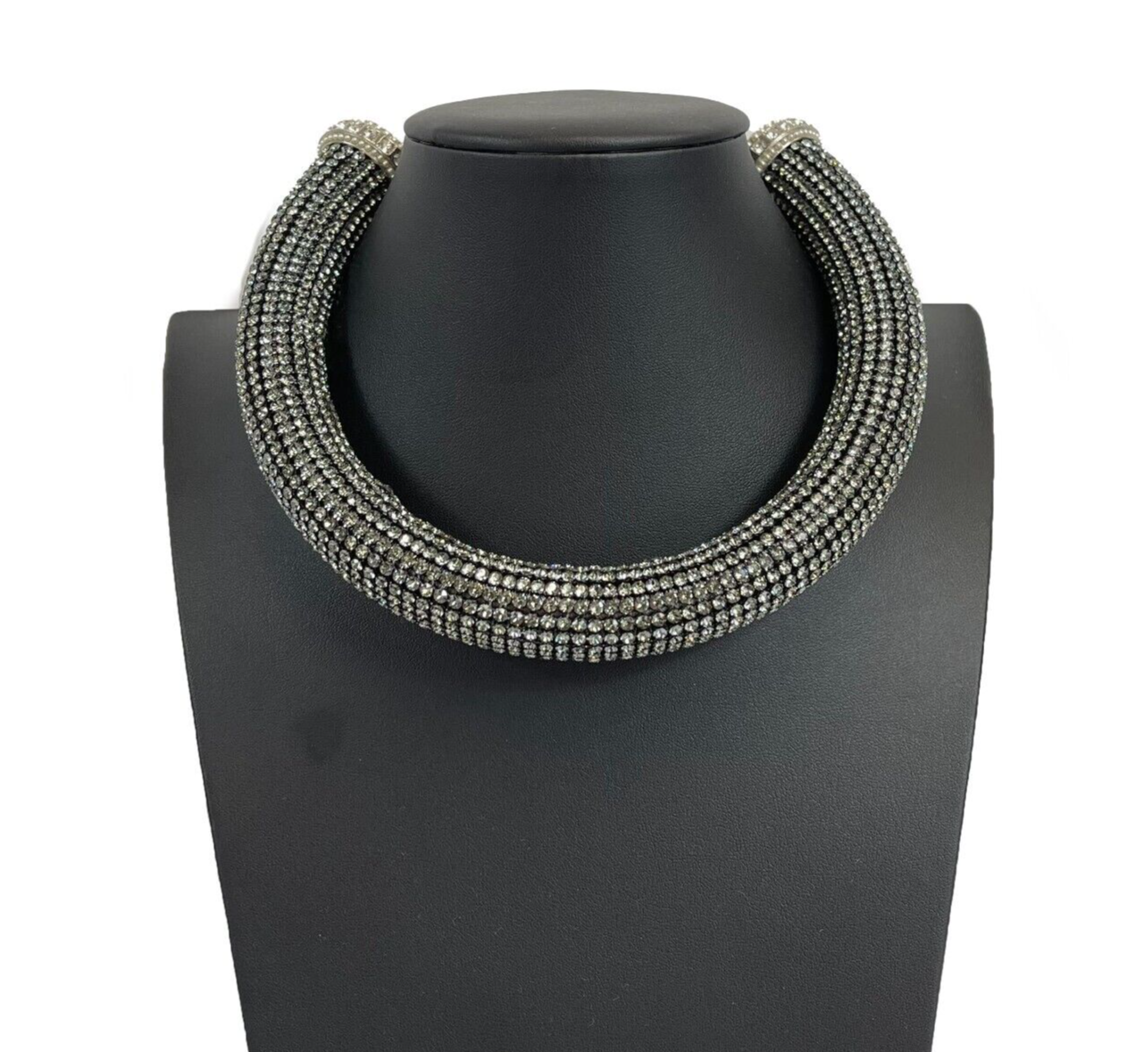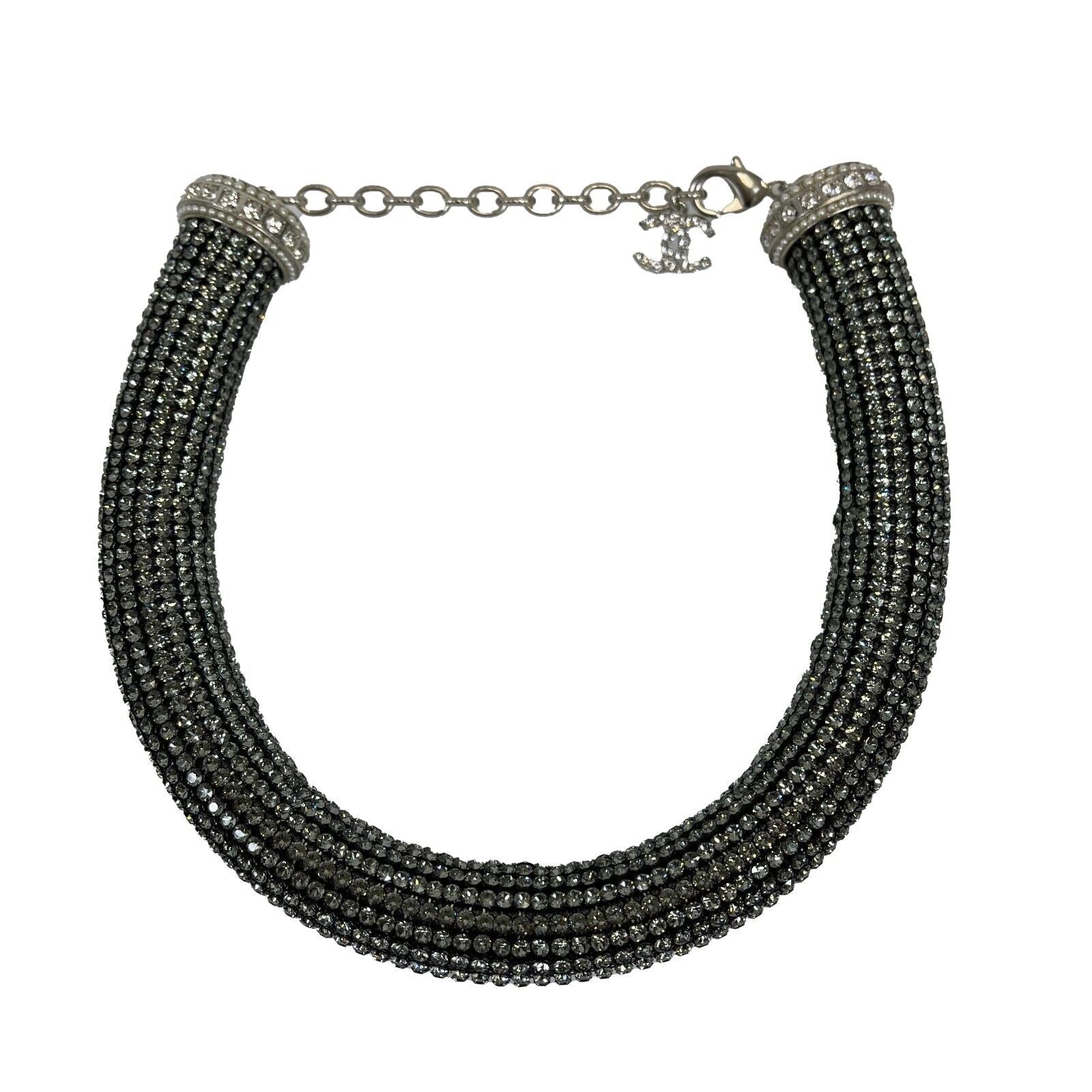 Chanel - Excellent - 17K Rhinestone Crystal Choker Necklace - Black / Silver - Necklace