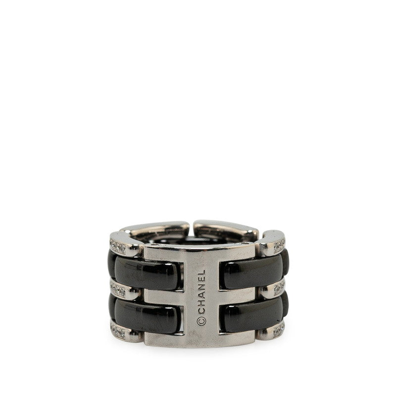 Chanel 18k Gold Diamond & Ceramic Ring Metal Ring in Excellent condition