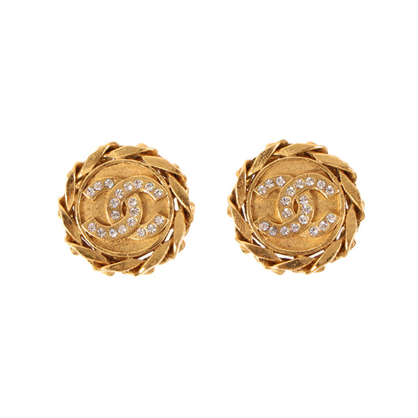 CHANEL 1988 Made Rhinestone Cc Mark Chain Edge Design Earrings