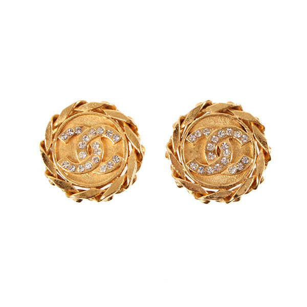 CHANEL 1988 Made Rhinestone Cc Mark Chain Edge Design Earrings
