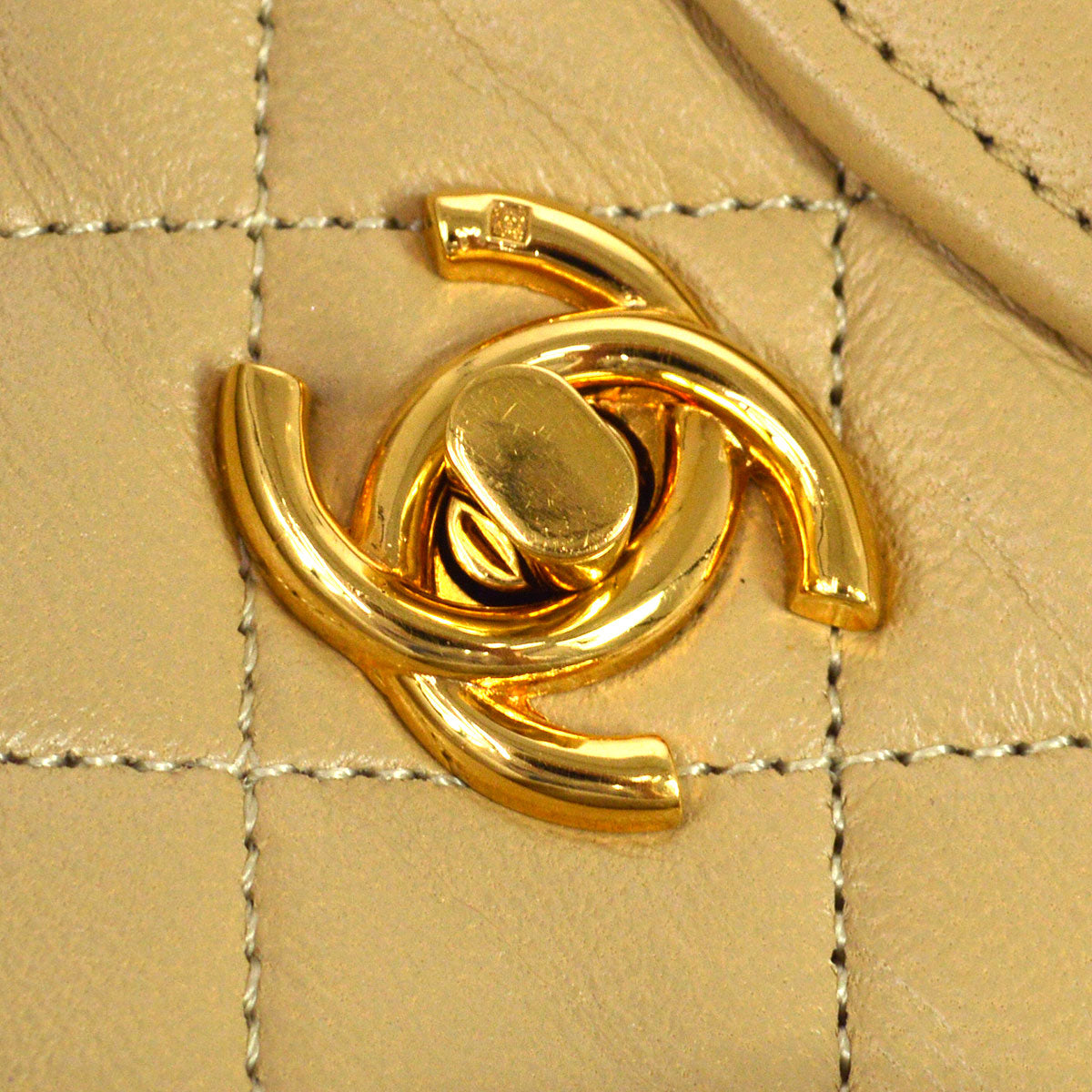 CHANEL 1989-1991 Beige Lambskin handbag mini 63966