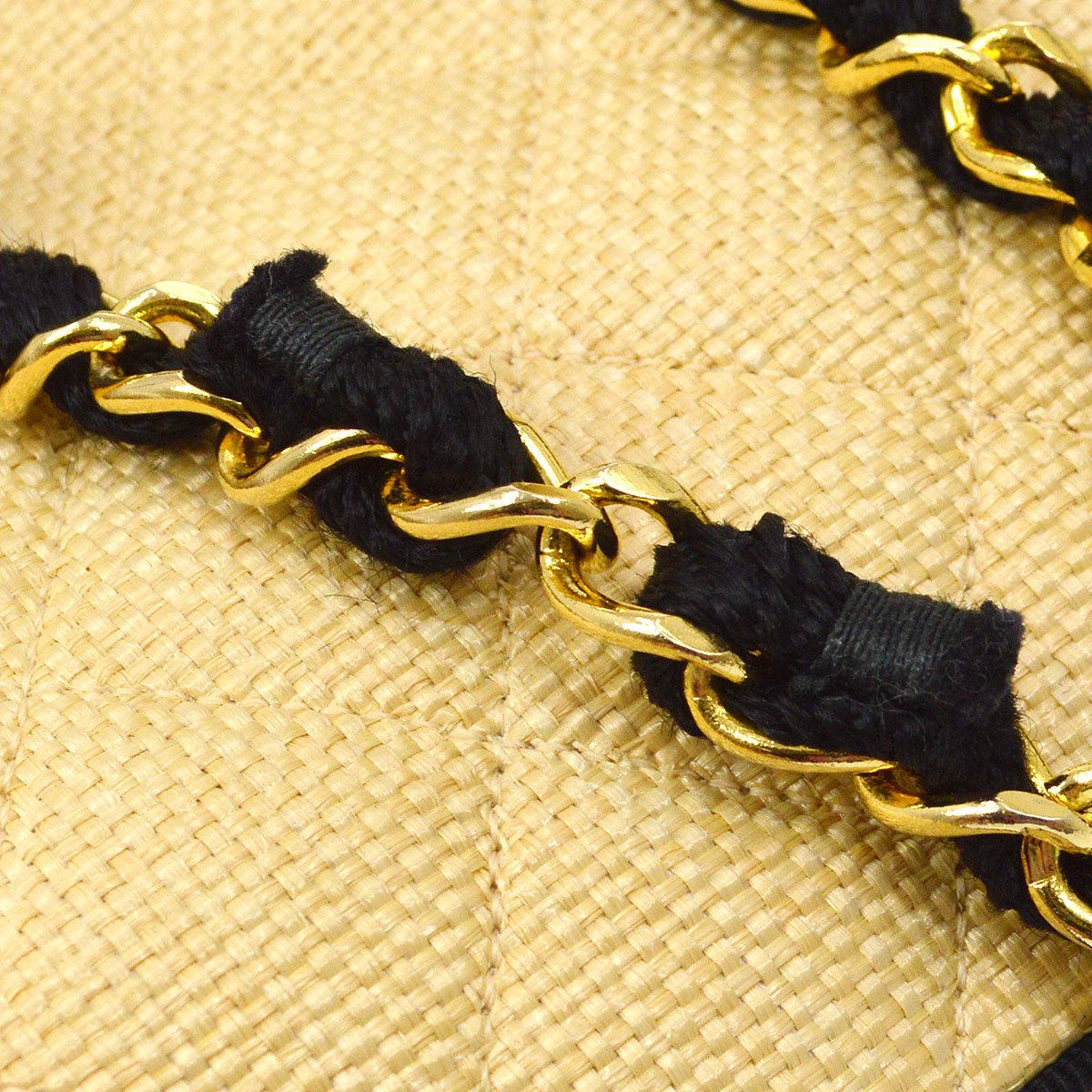 CHANEL 1989-1991 Beige Linen Quilted Chain Handbag 73152