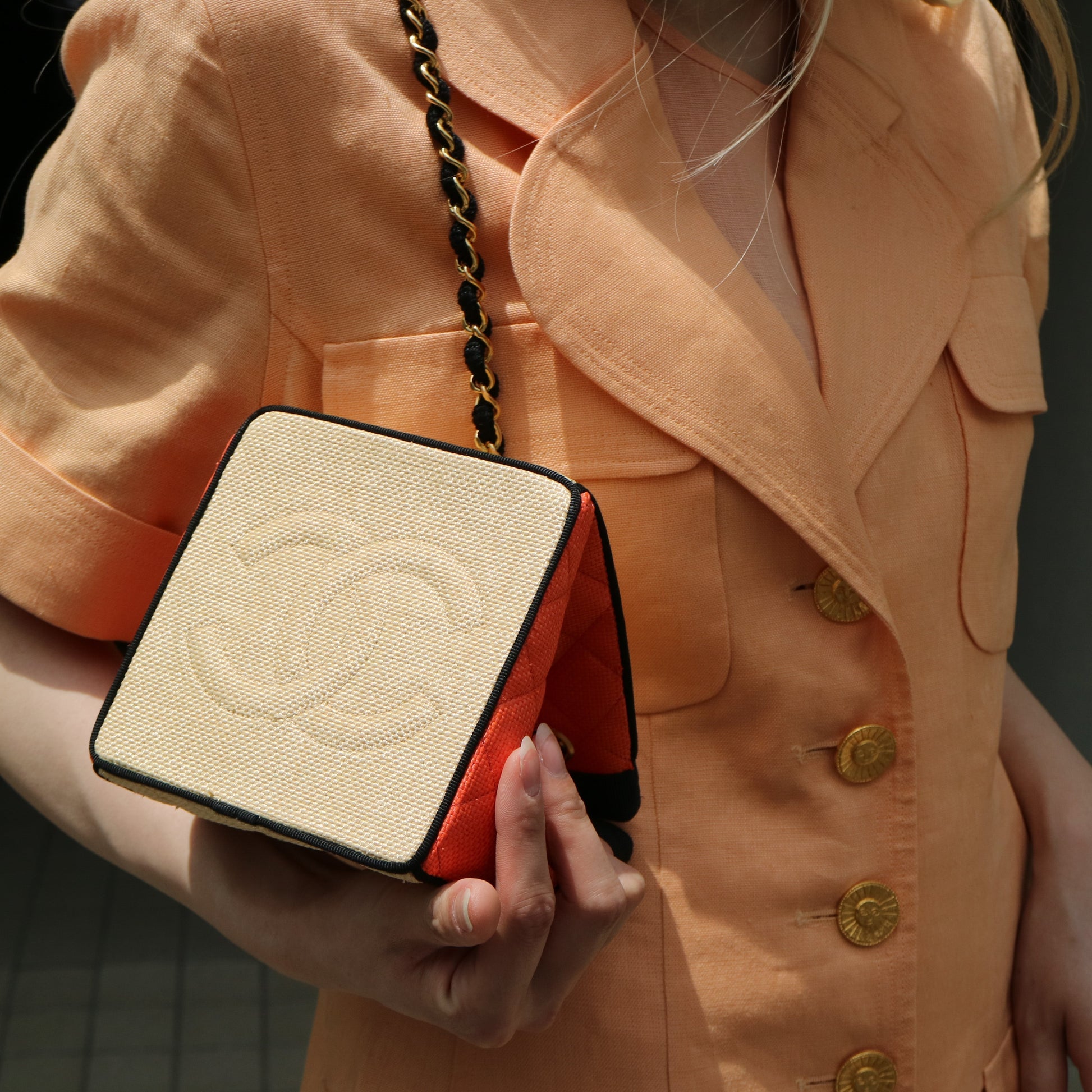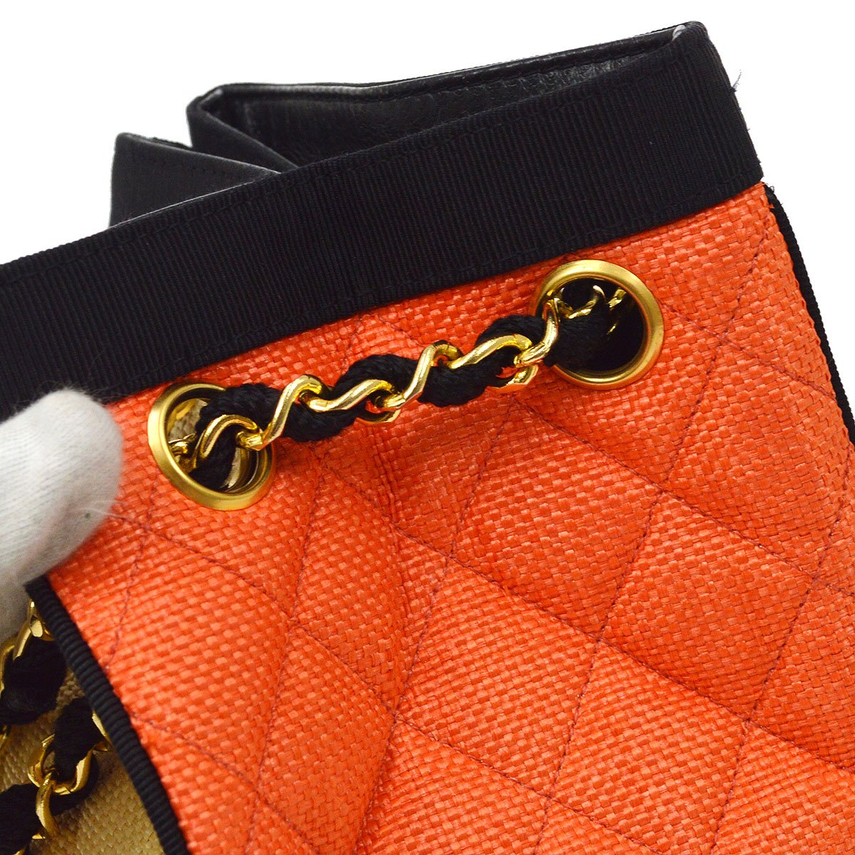 | CHANEL Chain Shoulde Hand Bag Beige Orange Linen | |