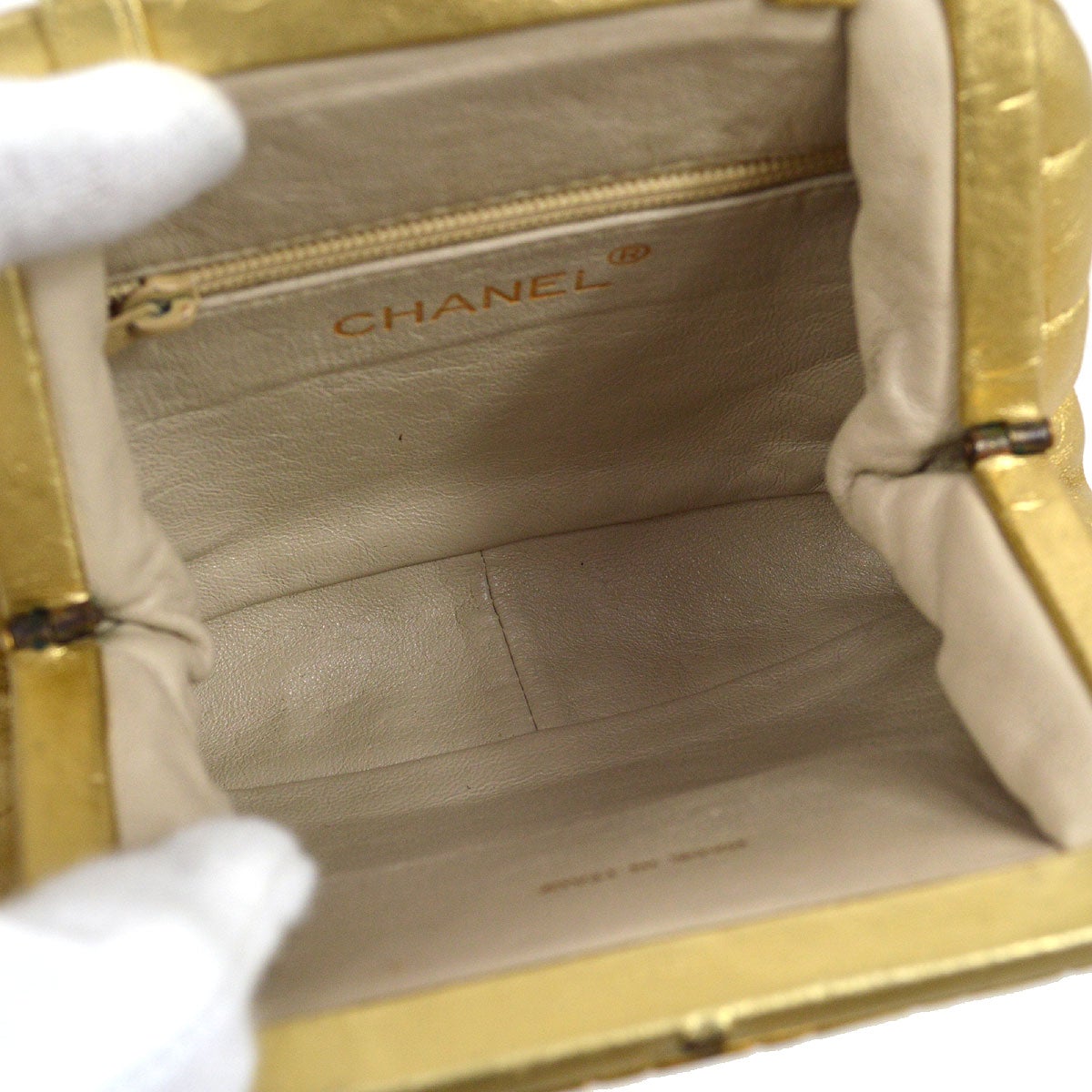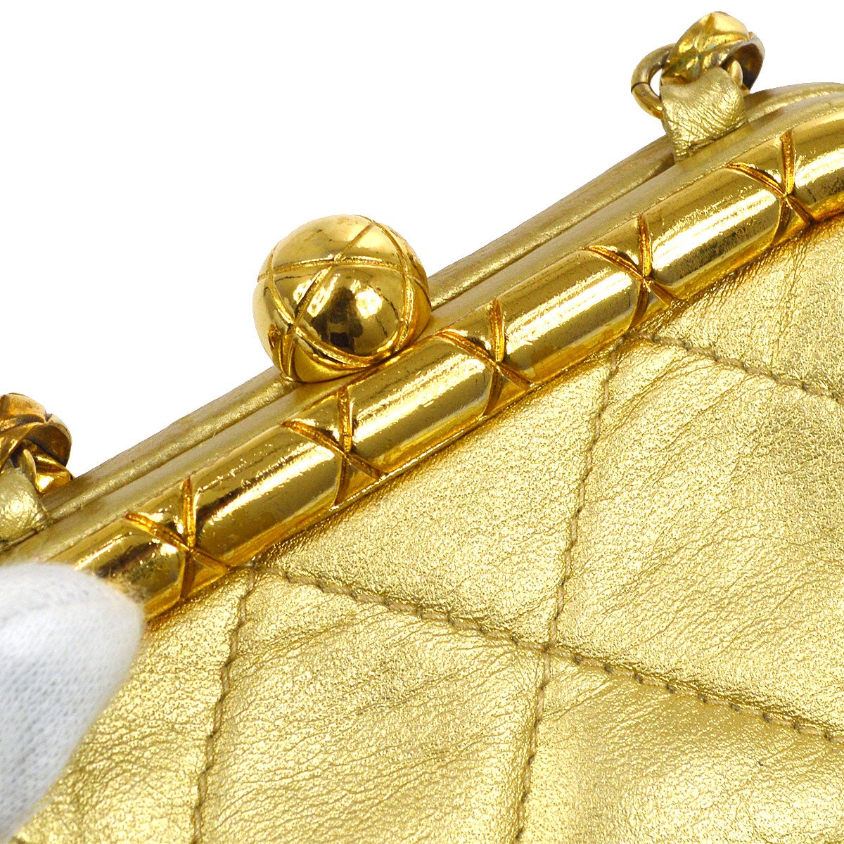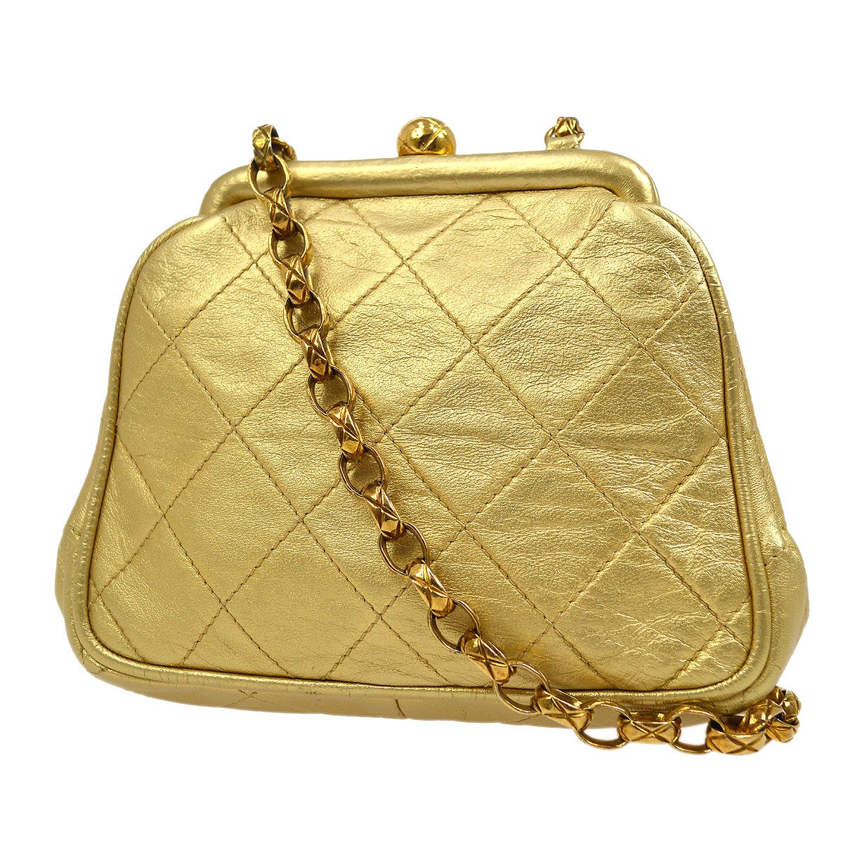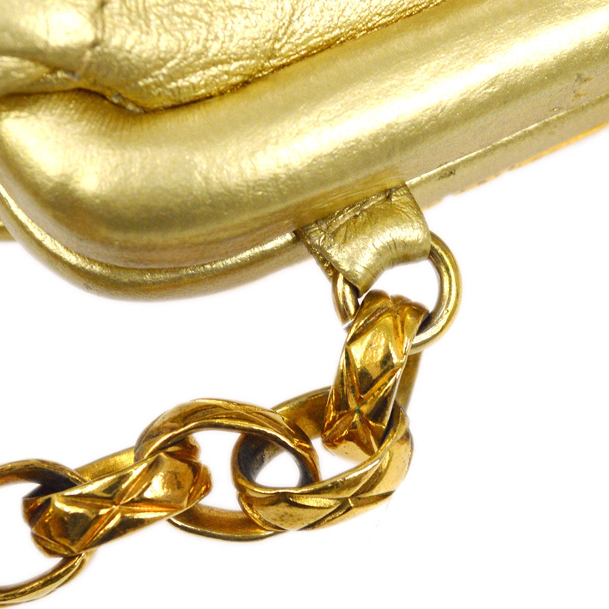 CHANEL 1989-1991 Chain Shoulder Bag Gold Lambskin A41412e