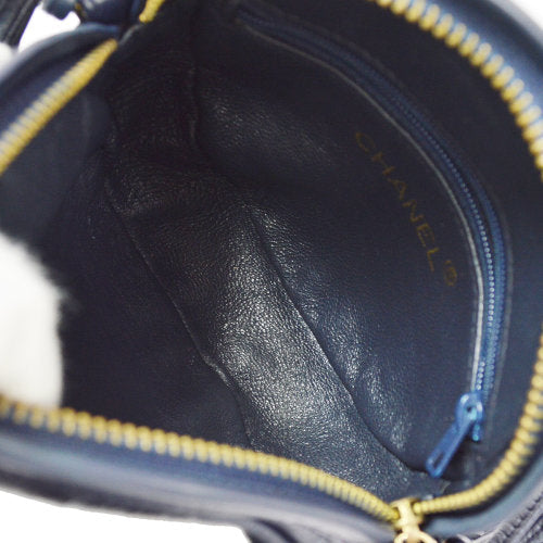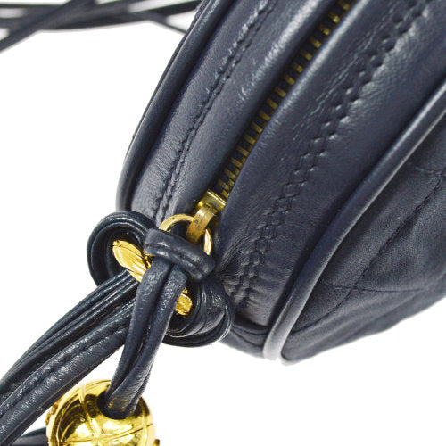 CHANEL 1989-1991 Quilted CC Fringe Cross Body Shoulder Bag Navy yg02090d