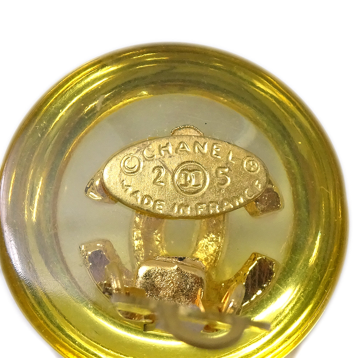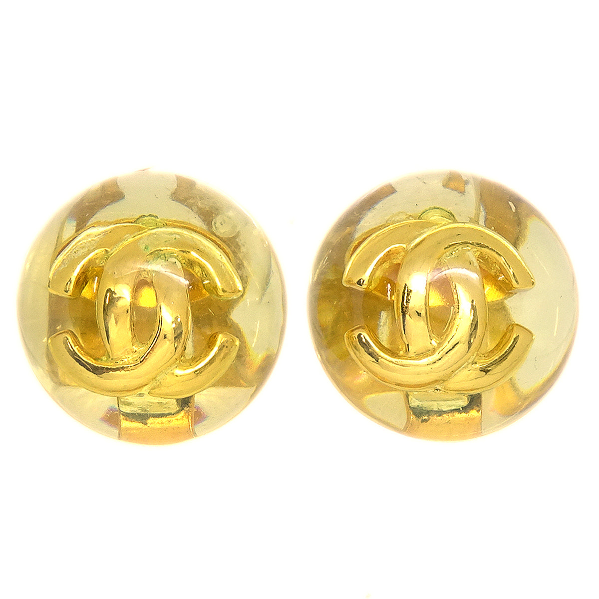 CHANEL 1990 Clear Ball CC Earrings Gold Clip-On 25 88058