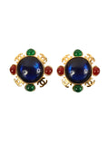 CHANEL 1990 Made Gripoix 4 Cc Mark Plate Earrings Gold/Multi