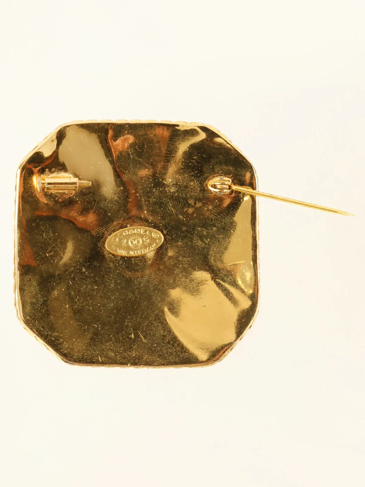 CHANEL 1990 Made Gripoix Pearl Octagon Motif Brooch Gold/Multi
