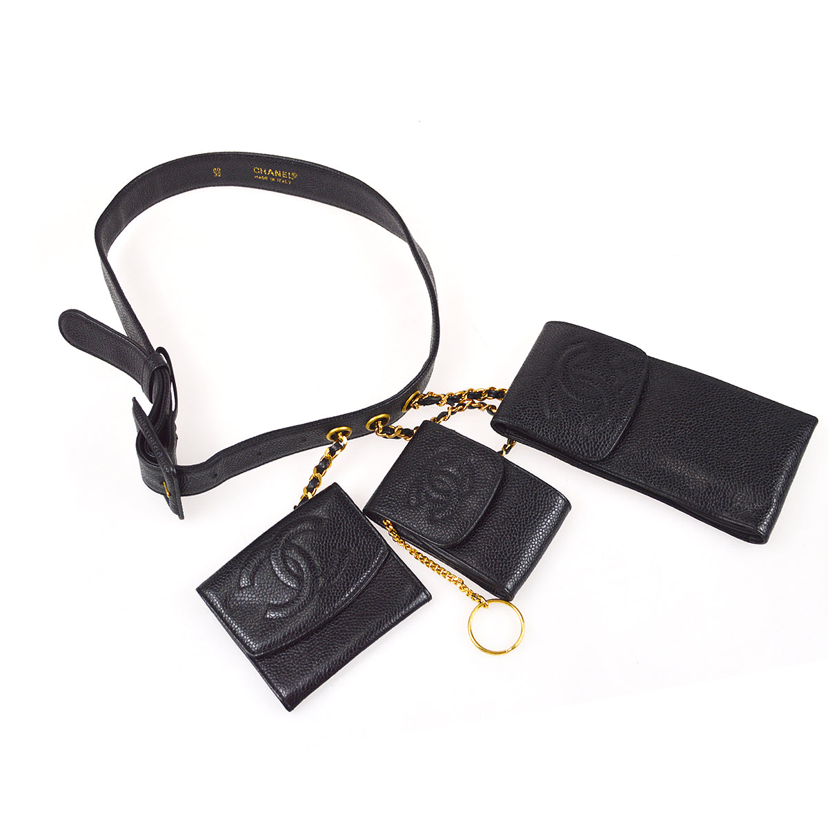 CHANEL 1990s Belt with Multi Bags Black Caviar #80 87907