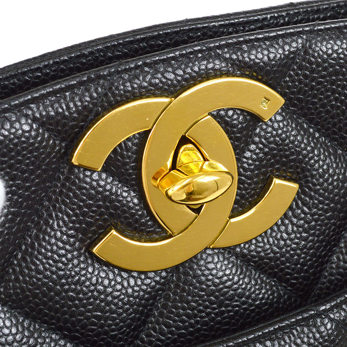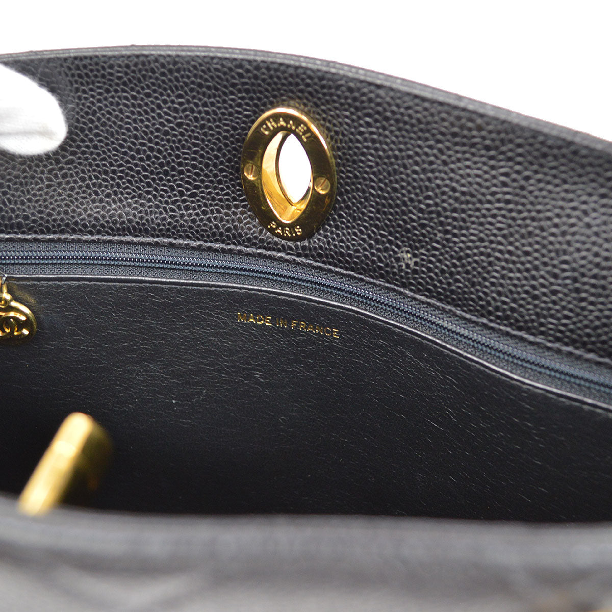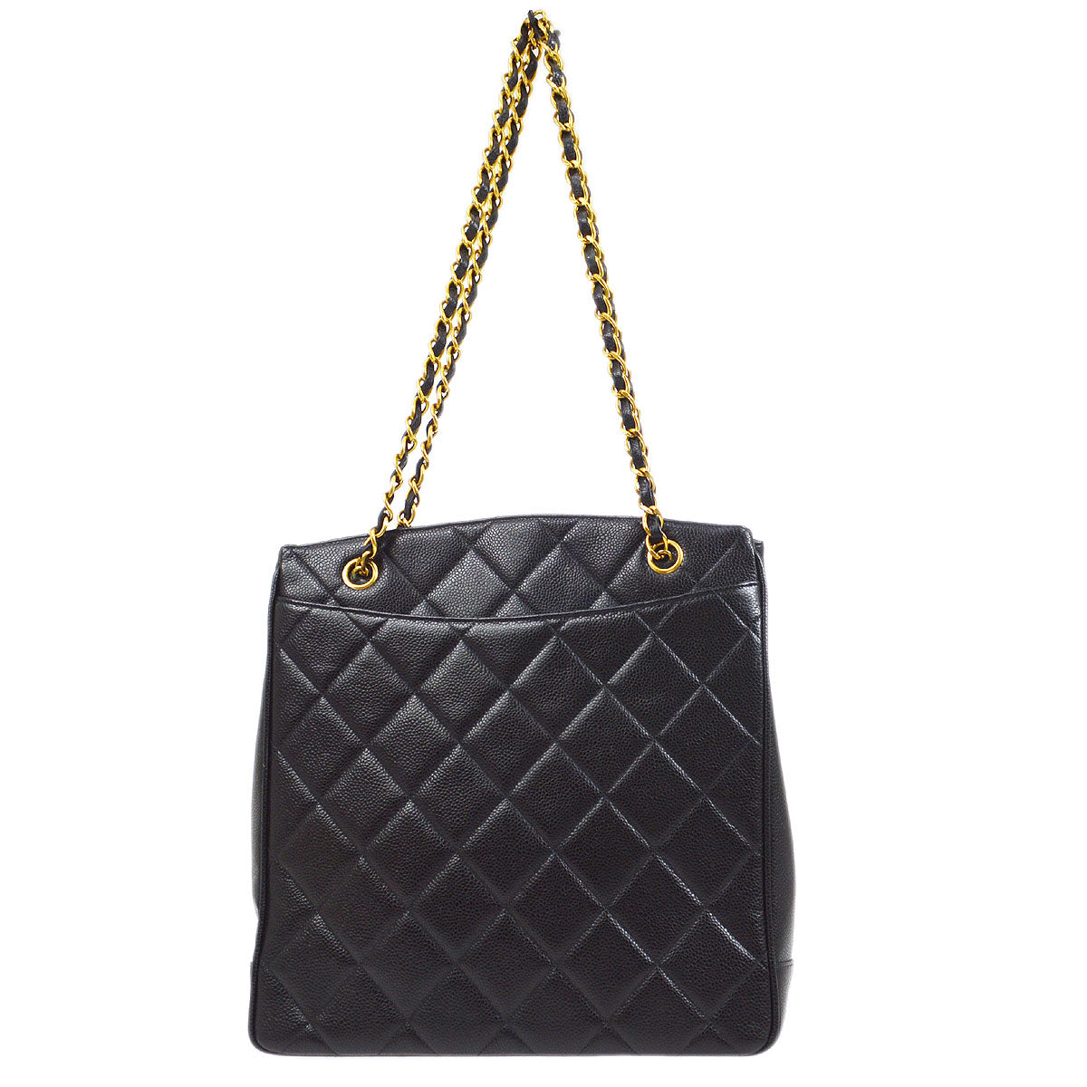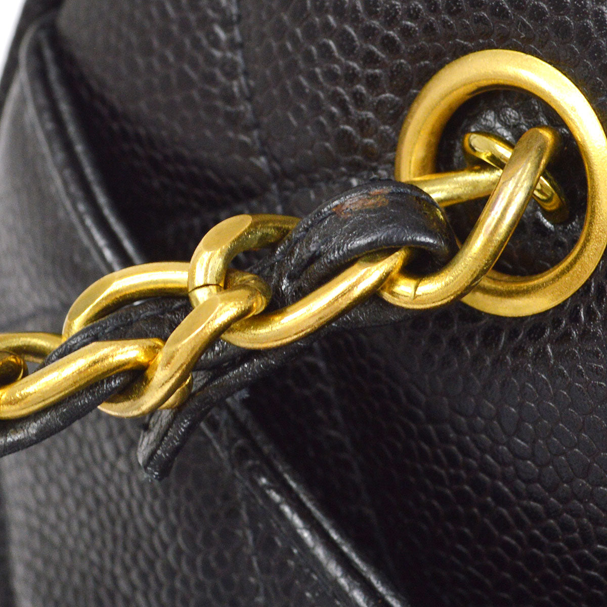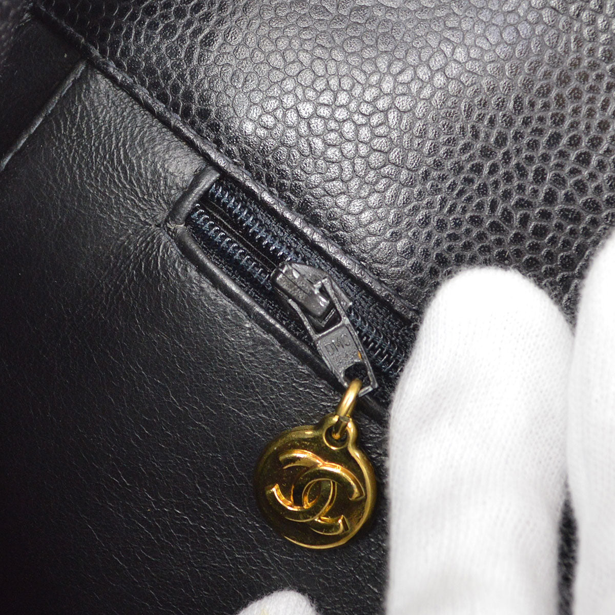 CHANEL 1991-1994 Big CC Chain Tote Bag Black Caviar 45123