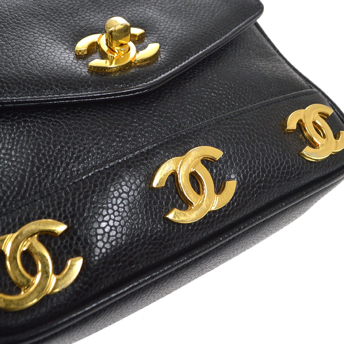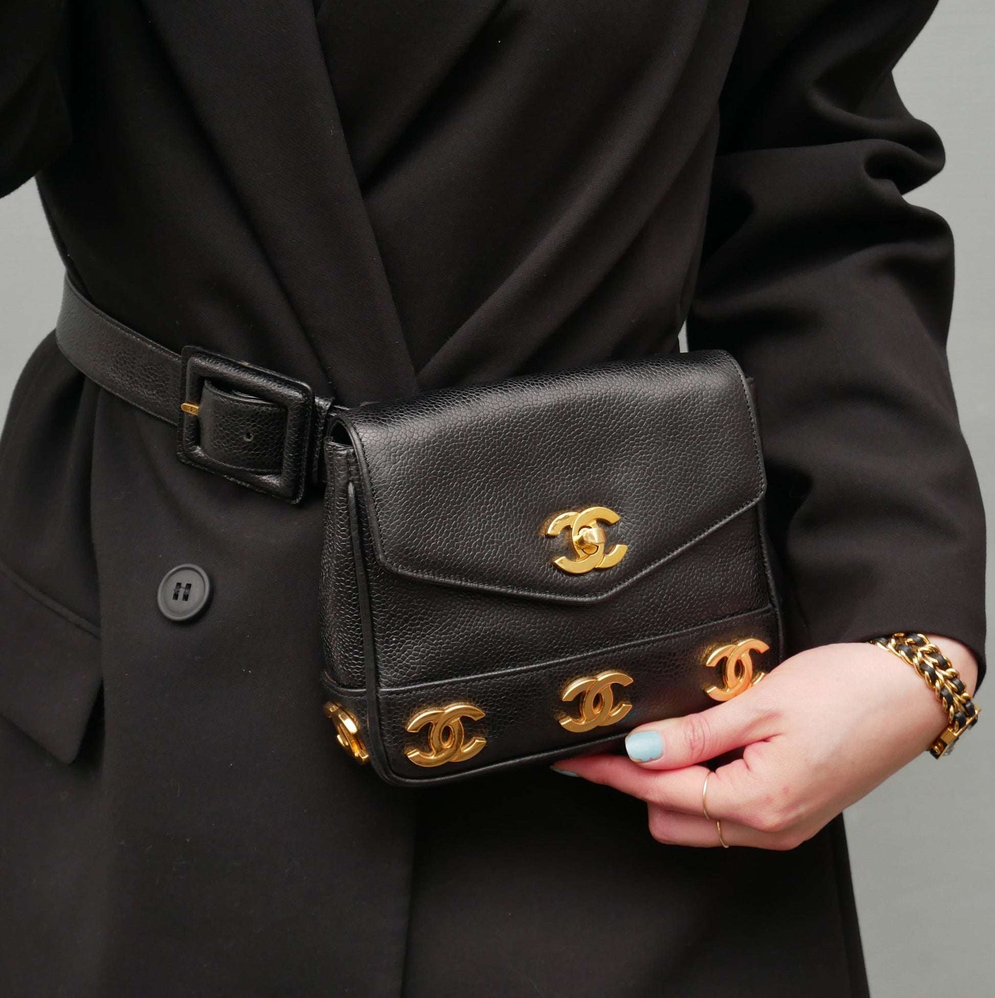 CHANEL 1991-1994 Black Caviar Triple CC Belt Bag #75 00721