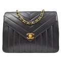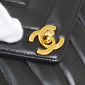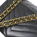 CHANEL V Stitch Single Flap Small Shoulder Bag Black Lambskin