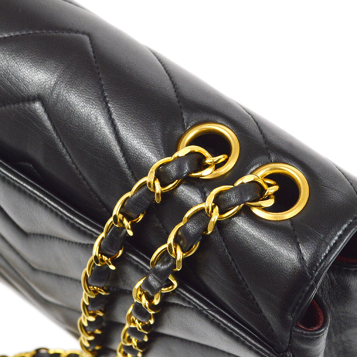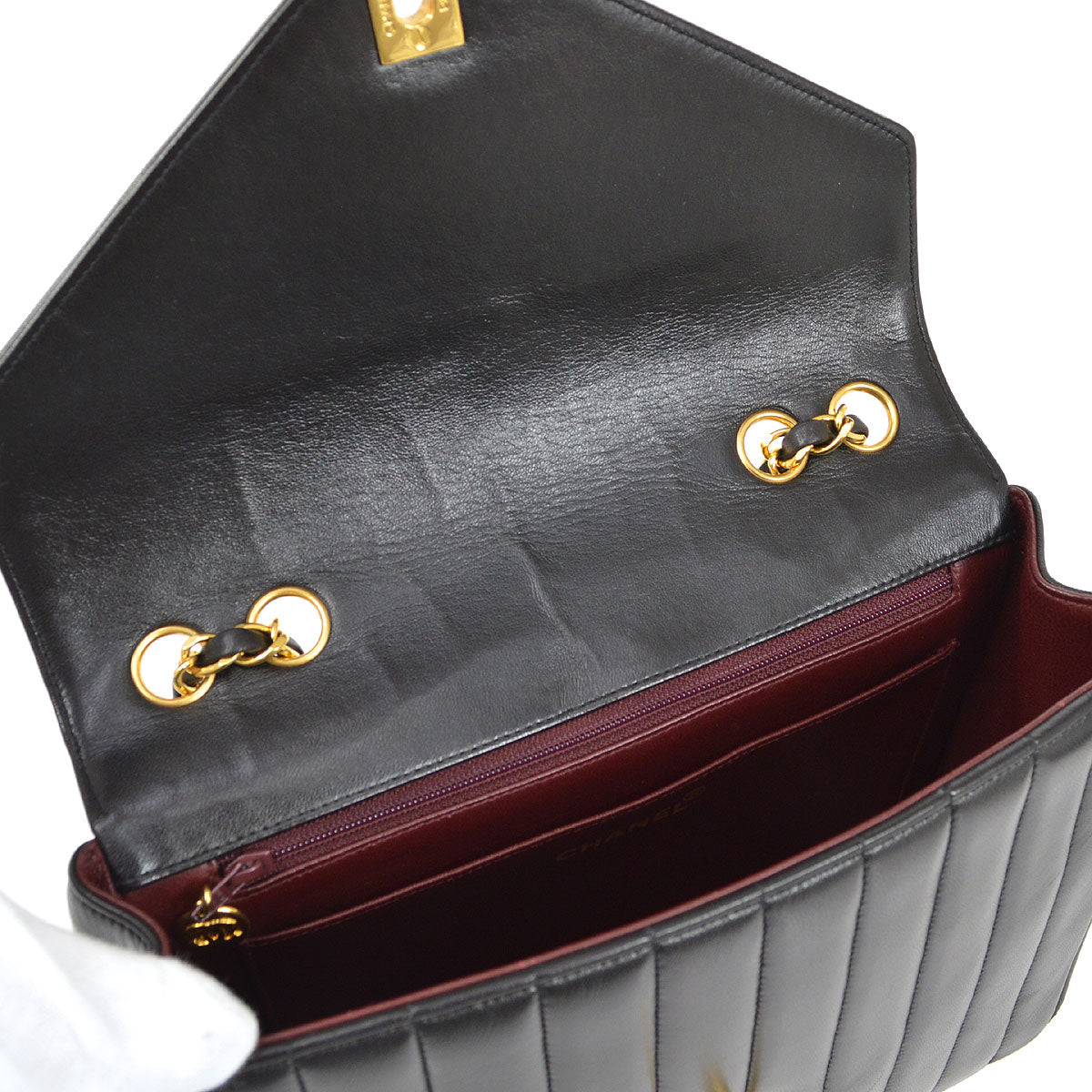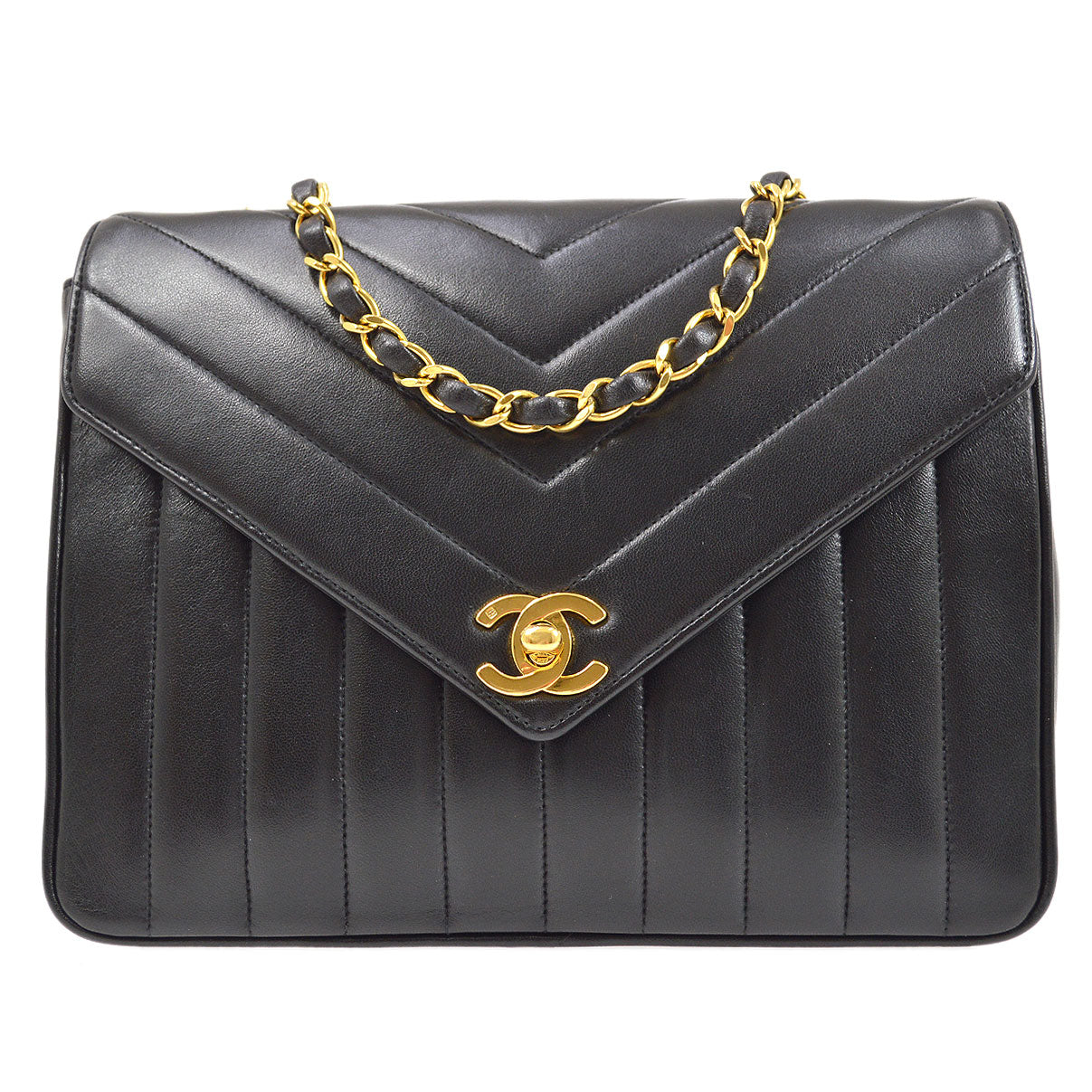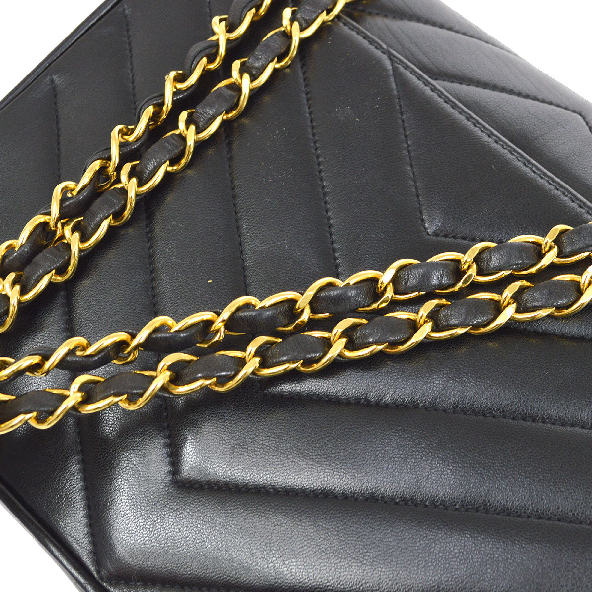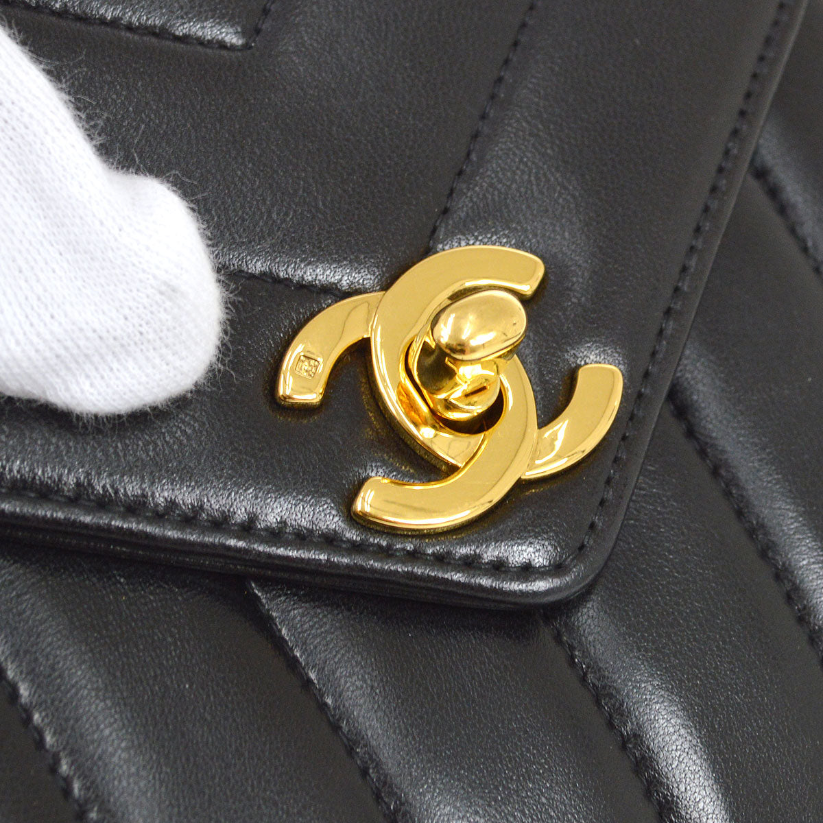 CHANEL? 1991-1994 Black Lambskin Chevron Letter Flap Bag Small 14355
