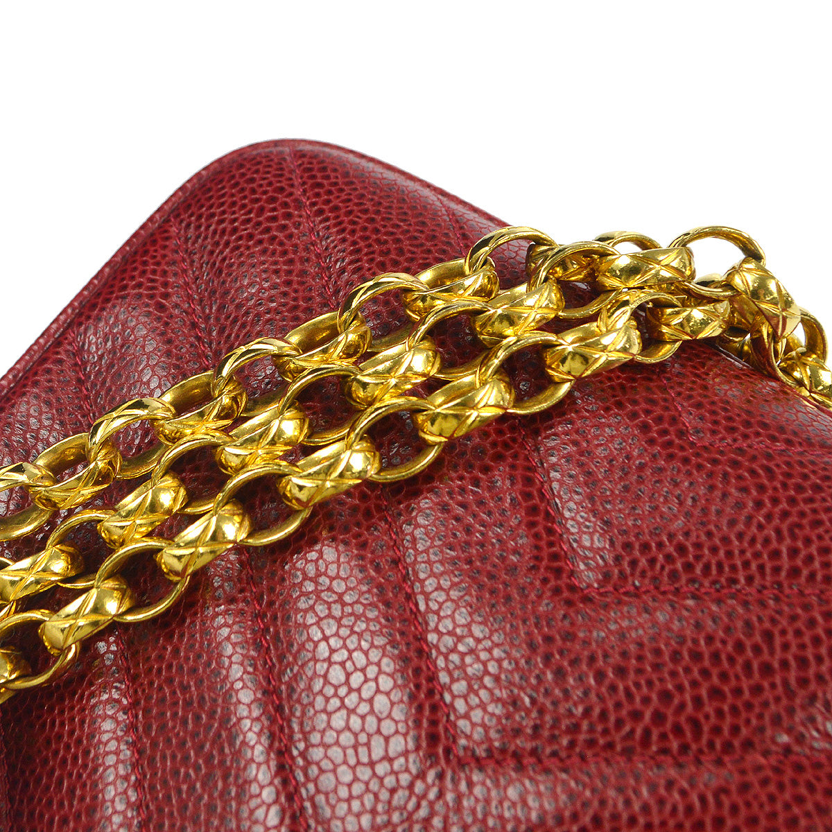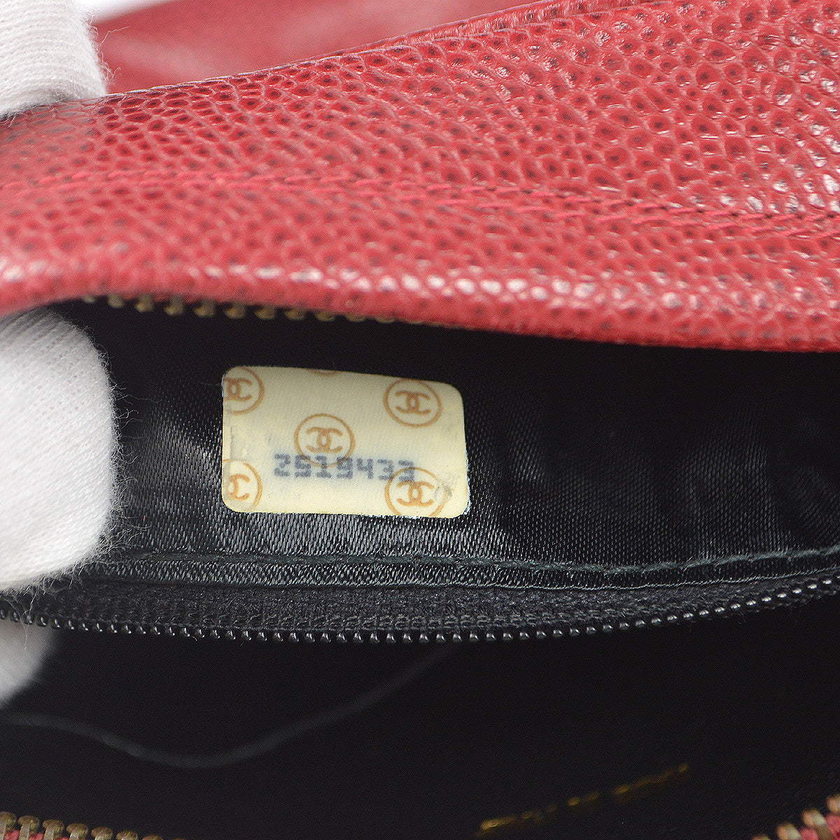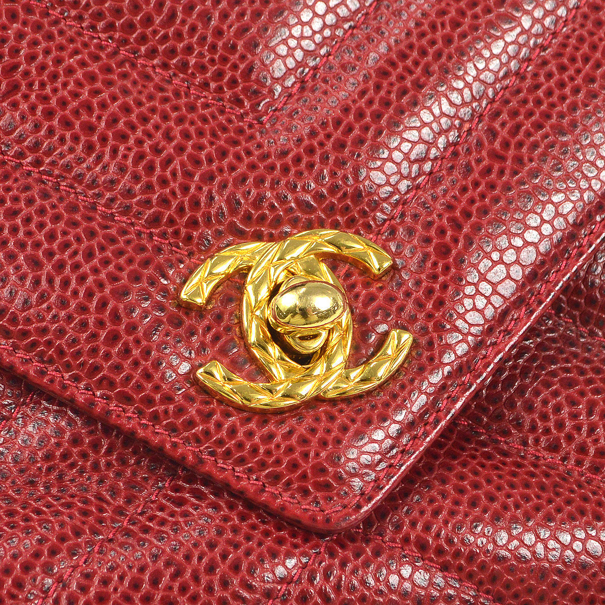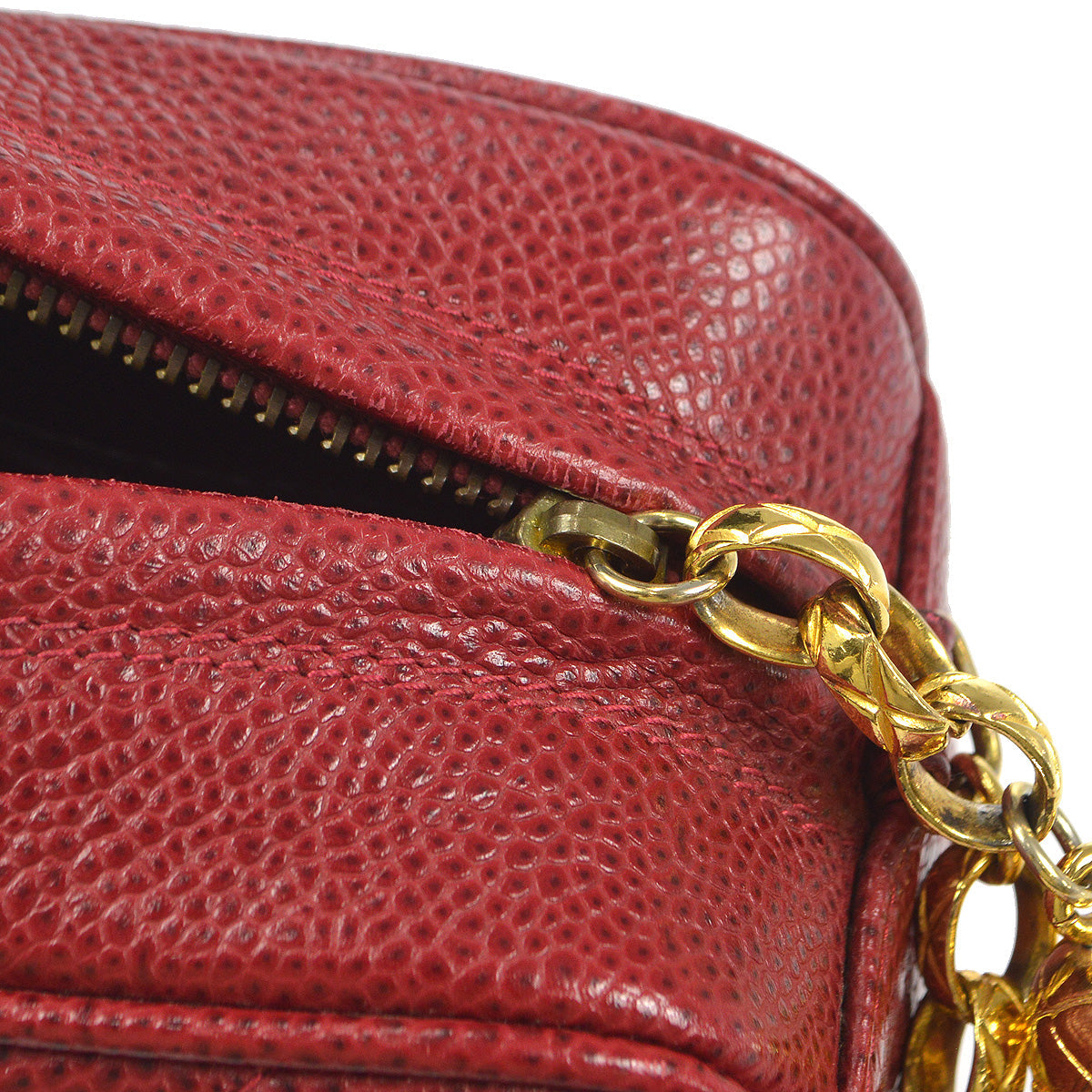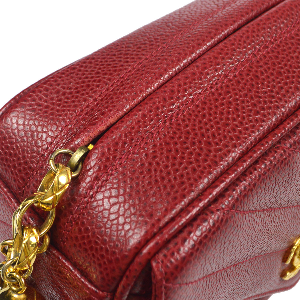 CHANEL 1991-1994 Chevron Pocket Camera Bag Mini Red Caviar 66835