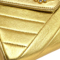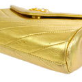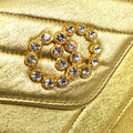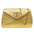 CHANEL 1991-1994 Bias Stitch Rhinestone Chain Shoulder Bag Gold