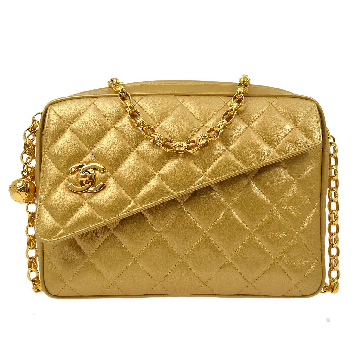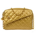CHANEL 1991-1994 Gold Lambskin Quilted Pocket Camera Bag 81576