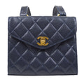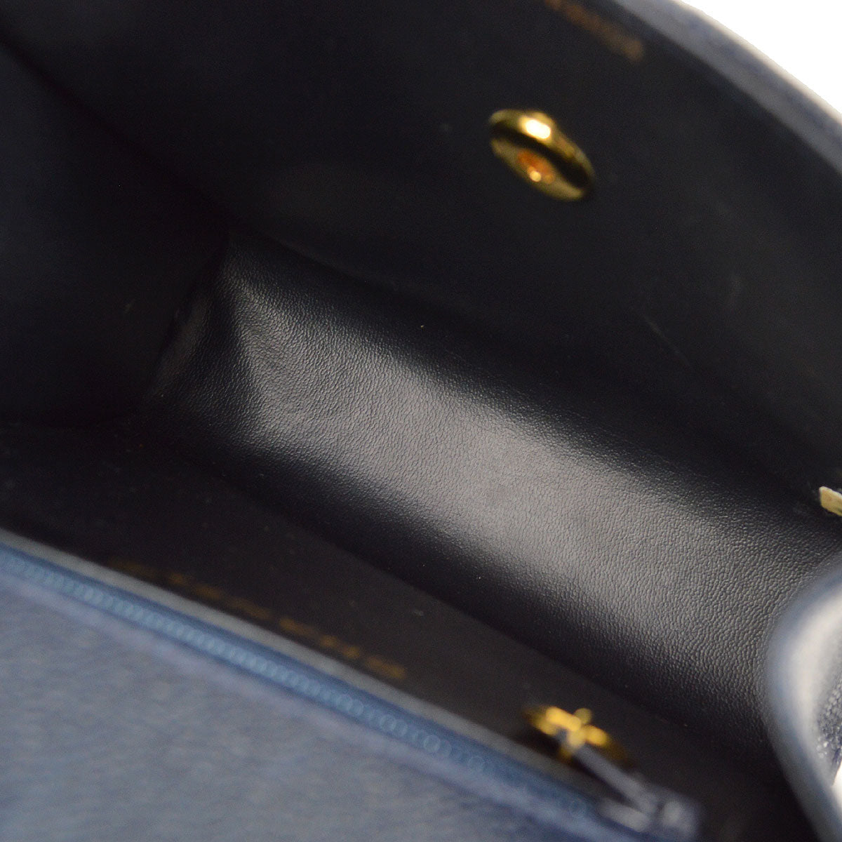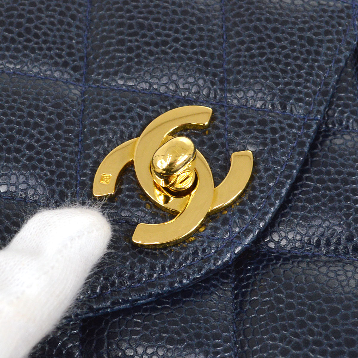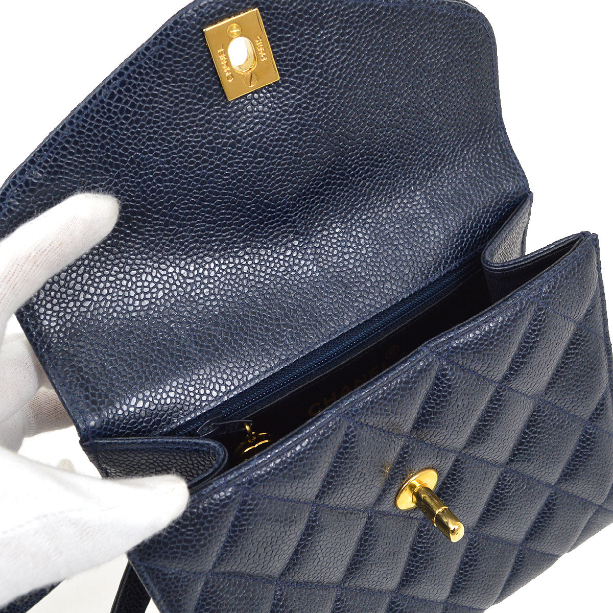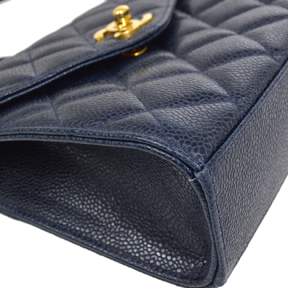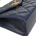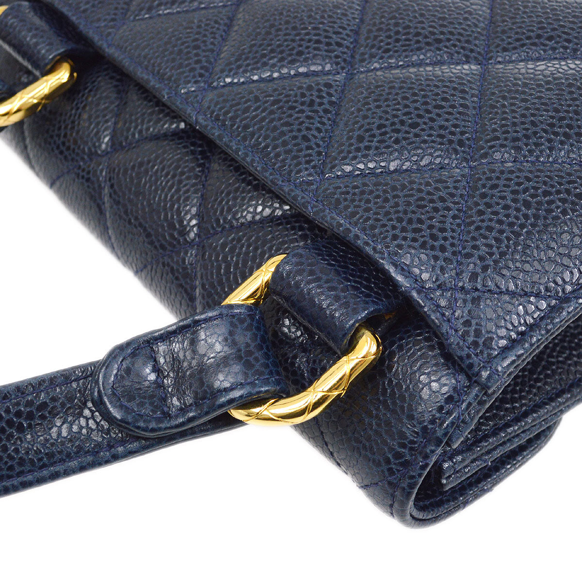 CHANEL 1991-1994 Quilted Shoulder Bag Navy Caviar Skin 13215