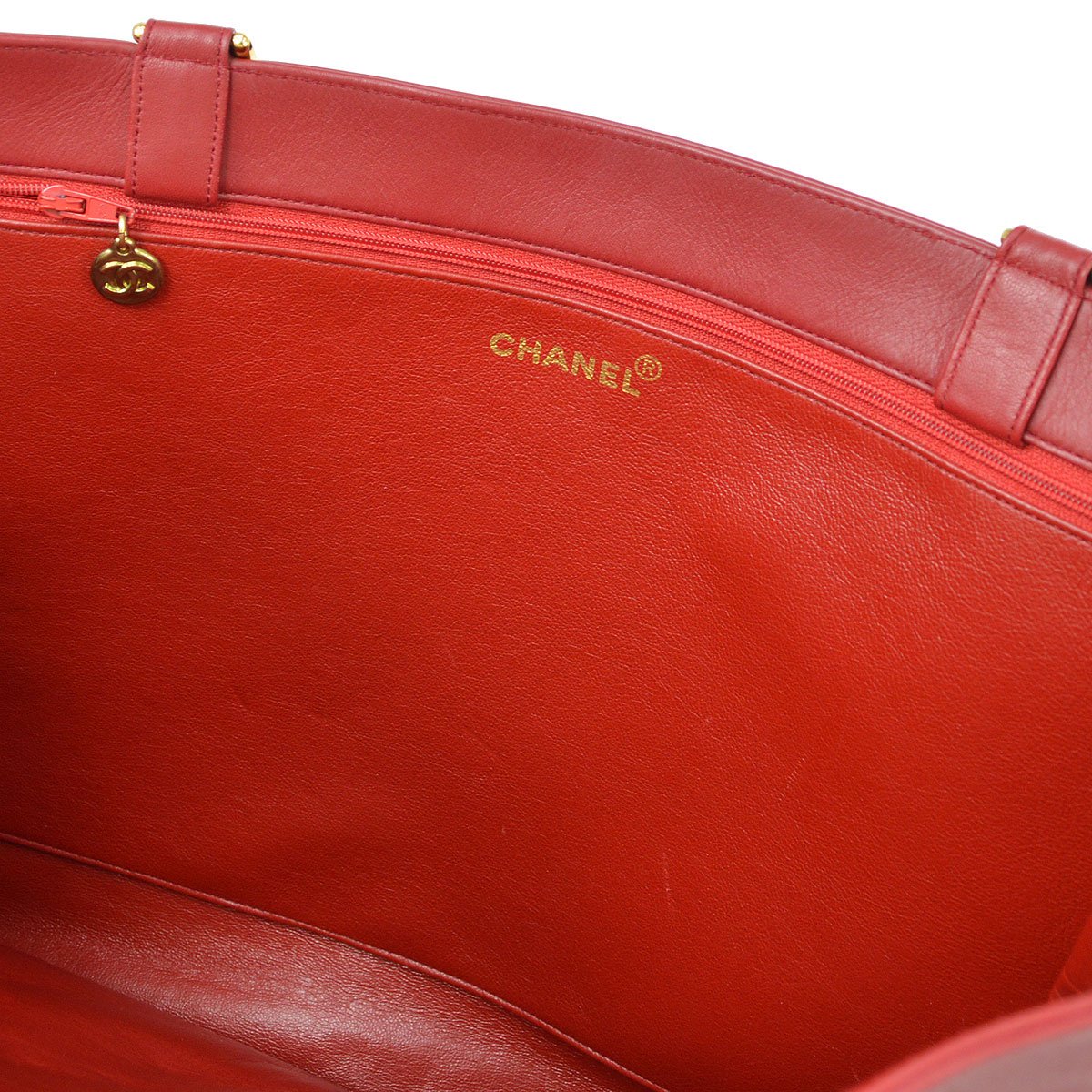 CHANEL 1991-1994 Red Lambskin XL Chain Tote Bag 91473