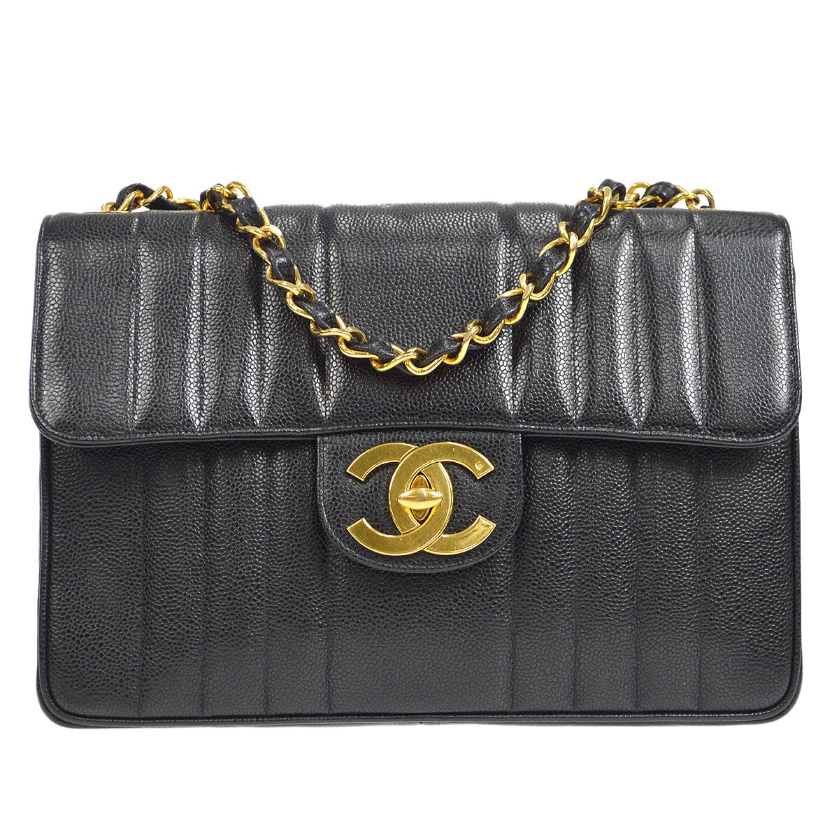 Chanel? 1991-1994 Vertical Classic Flap Jumbo Black Caviar 17145