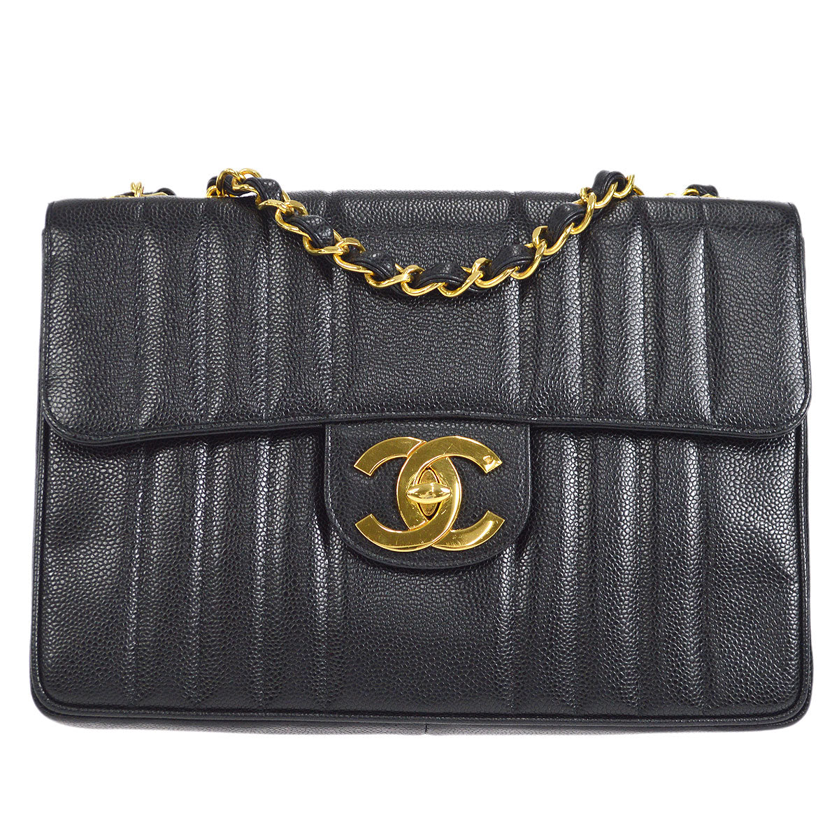 Chanel? 1991-1994 Vertical Classic Flap Jumbo Black Caviar 27226