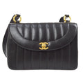 CHANEL 1991-1994 Vertical Round Border Flap Shoulder Bag Small Black Lambskin 45618