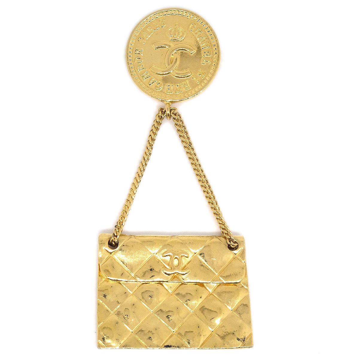 CHANEL 1991 Quilted Bag Motif Brooch Pin Gold 31538