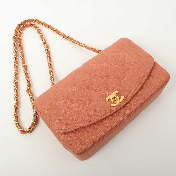 Chanel 1992 Cotton Diana Flap Chain Bag Light Coral