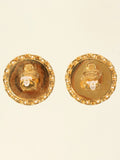 CHANEL 1992 Made Chain Motif Round Cc Mark Earrings Black/Gold
