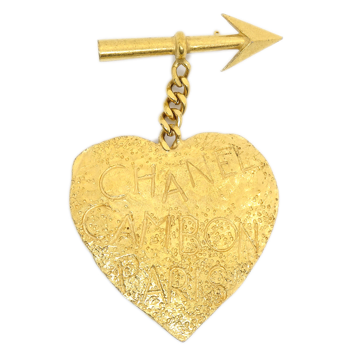 CHANEL 1993 Arrow Heart Brooch Pin Gold 16463