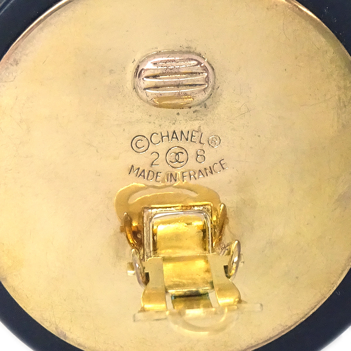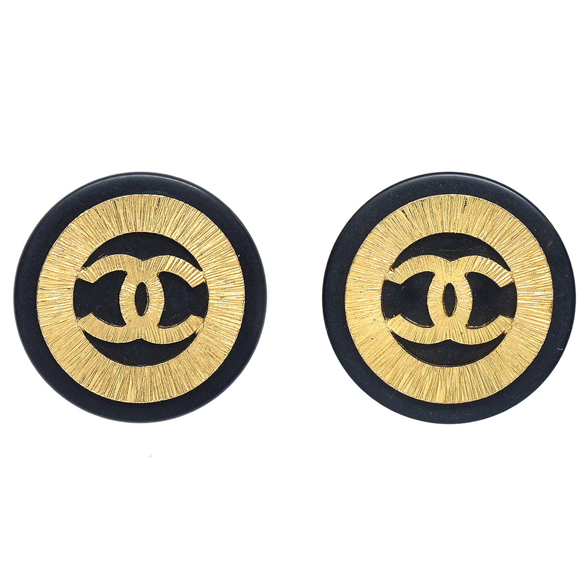 CHANEL 1993 Black & Gold Button Earrings Clip-On 28 87954