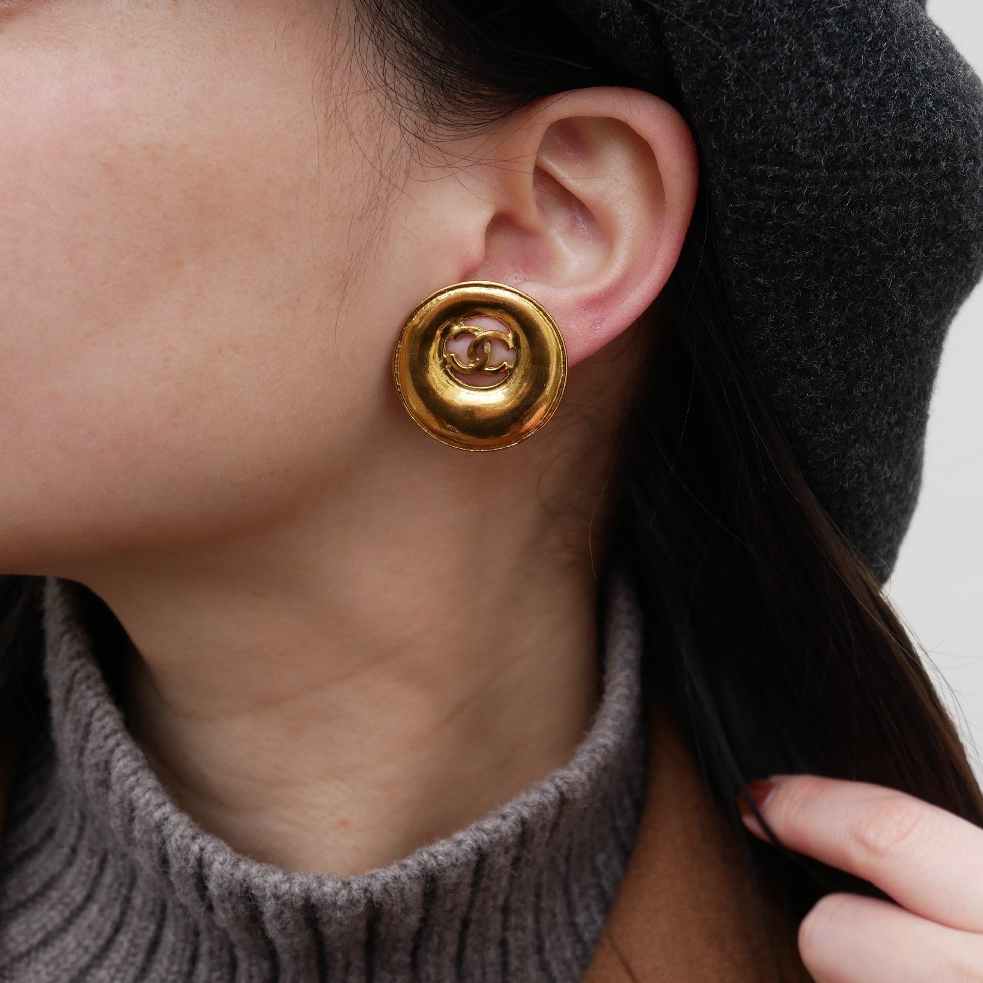| CHANEL Button Earrings Gold Clip-On 93P | |