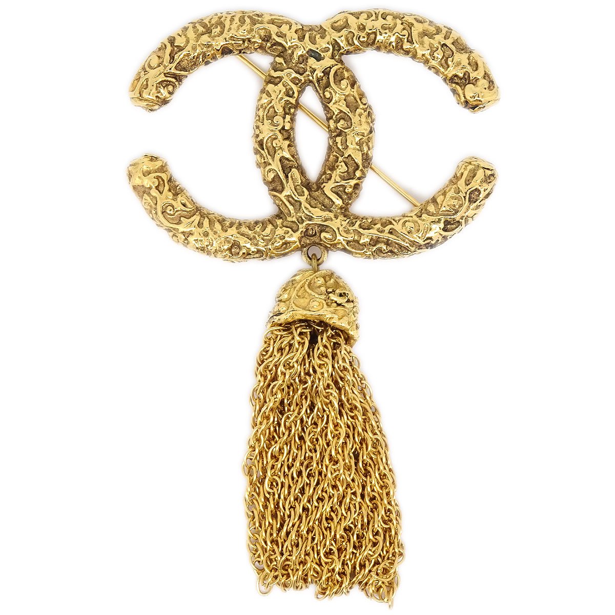 CHANEL 1993 CC Fringe Brooch Pin Gold Medium 82254