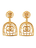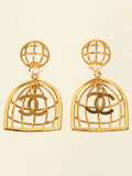 CHANEL 1993 Made Bird Cage Cc Mark Swing Earrings Gold