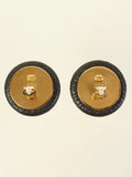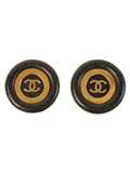 CHANEL 1993 Made Round Cc Mark Plate Earrings Gold/Black