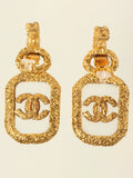 CHANEL 1993 Made Square Cc Mark Swing Earrings Gold/Clear