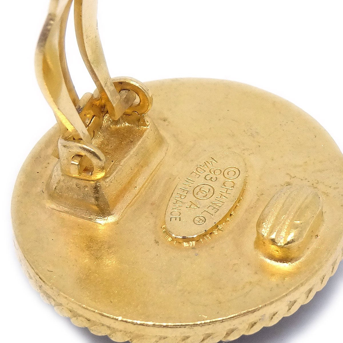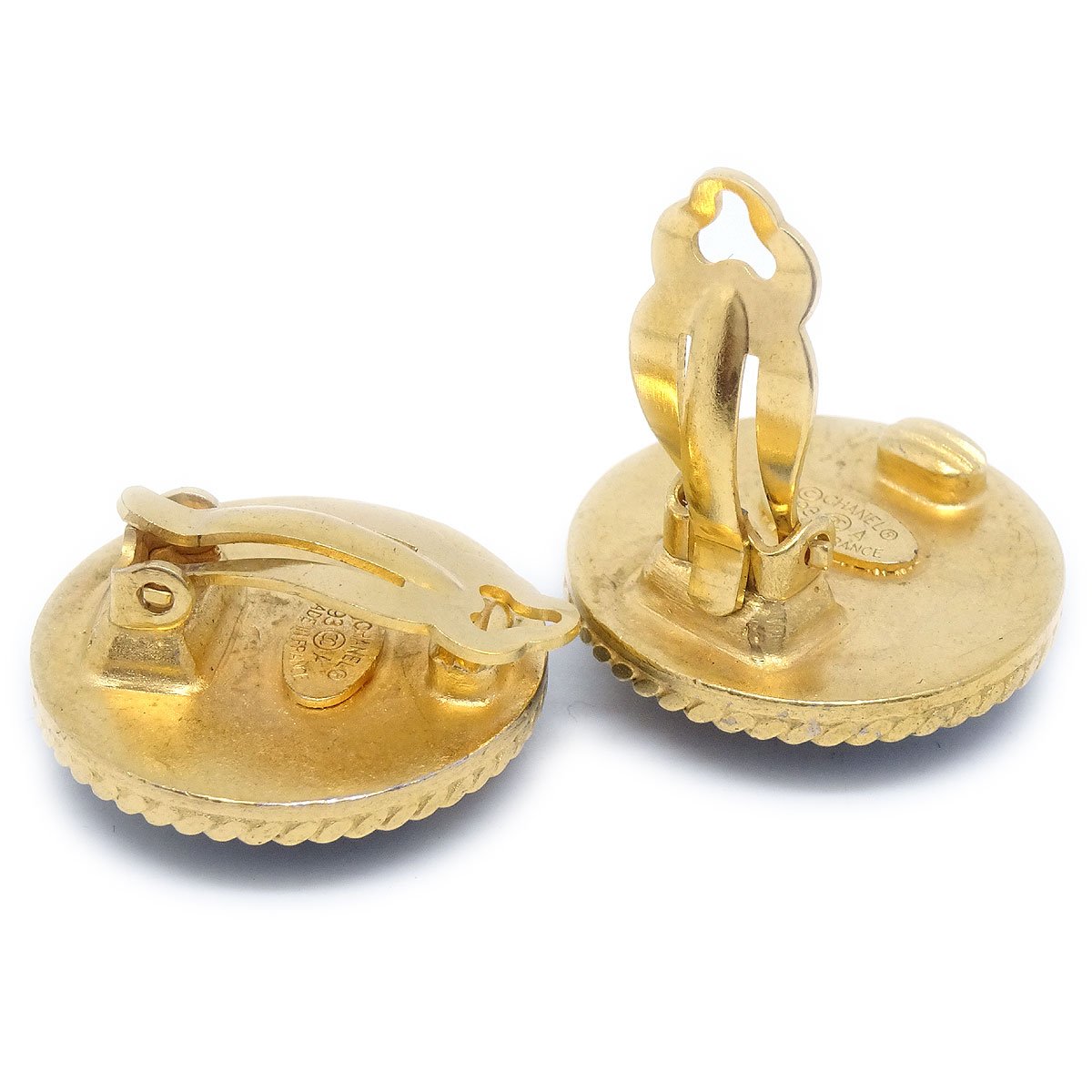 CHANEL shell Button Earrings Gold Black Clip-On 93A