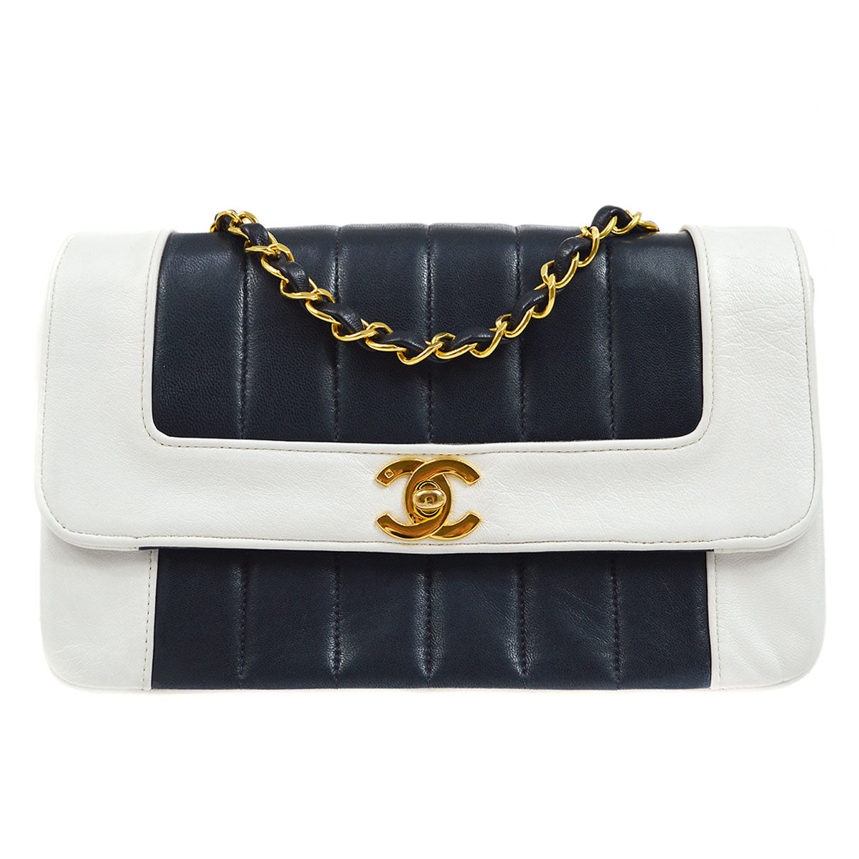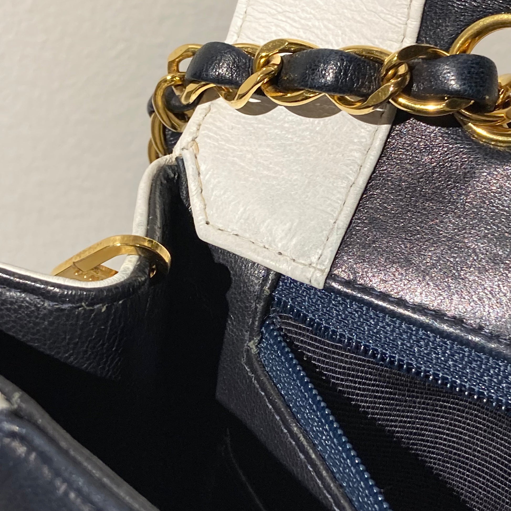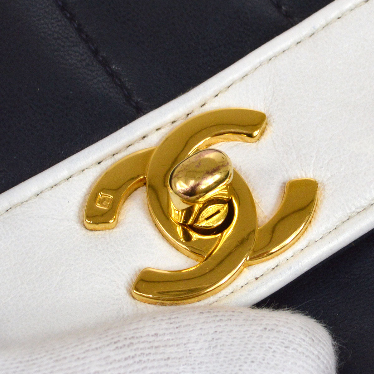 Chanel? 1993 Navy White Lambskin Vertical Border Flap Small 85081