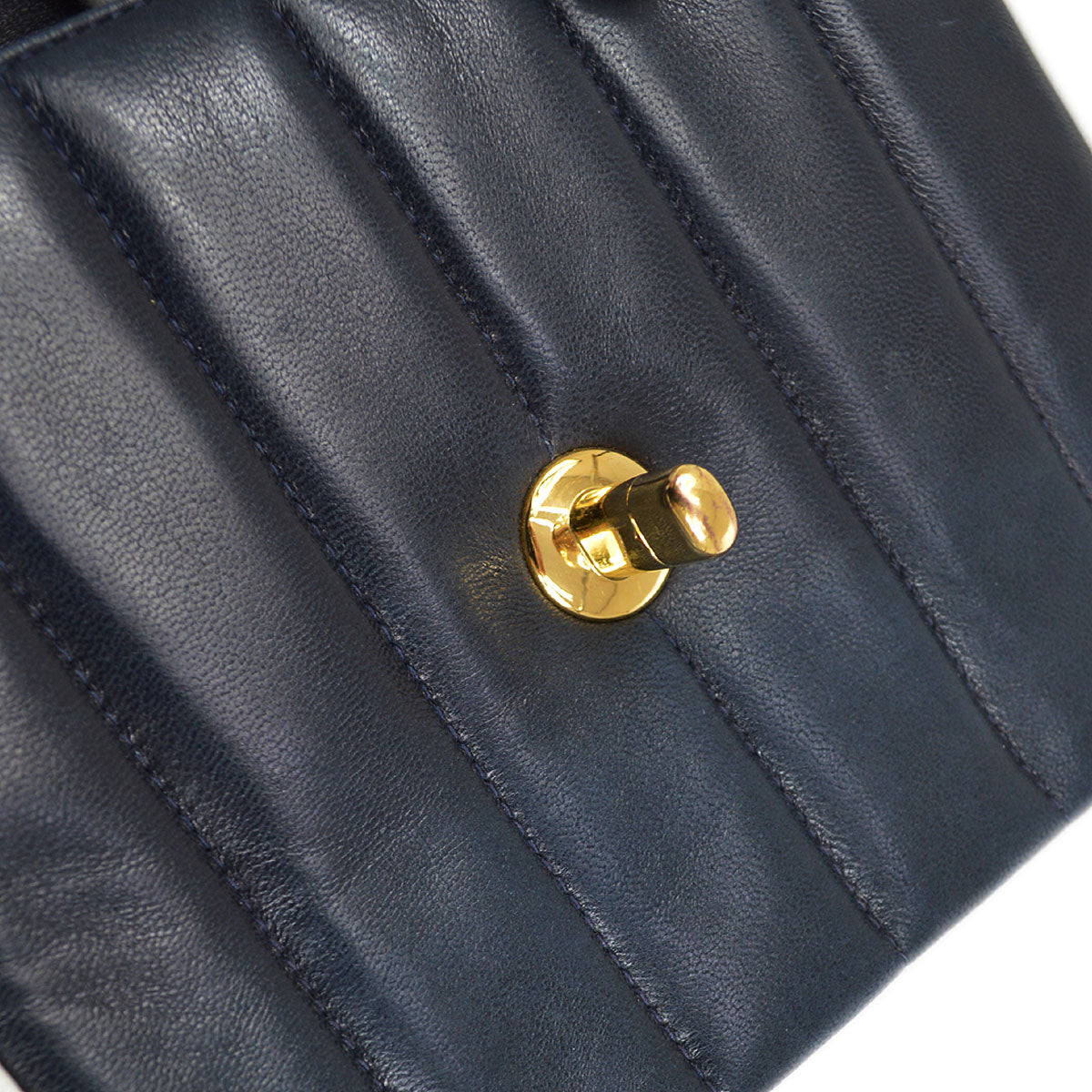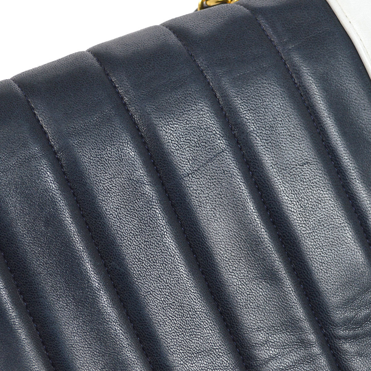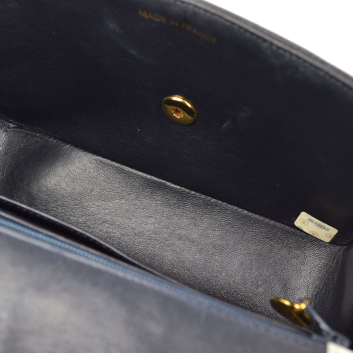 Chanel? 1993 Navy White Lambskin Vertical Border Flap Small 85081