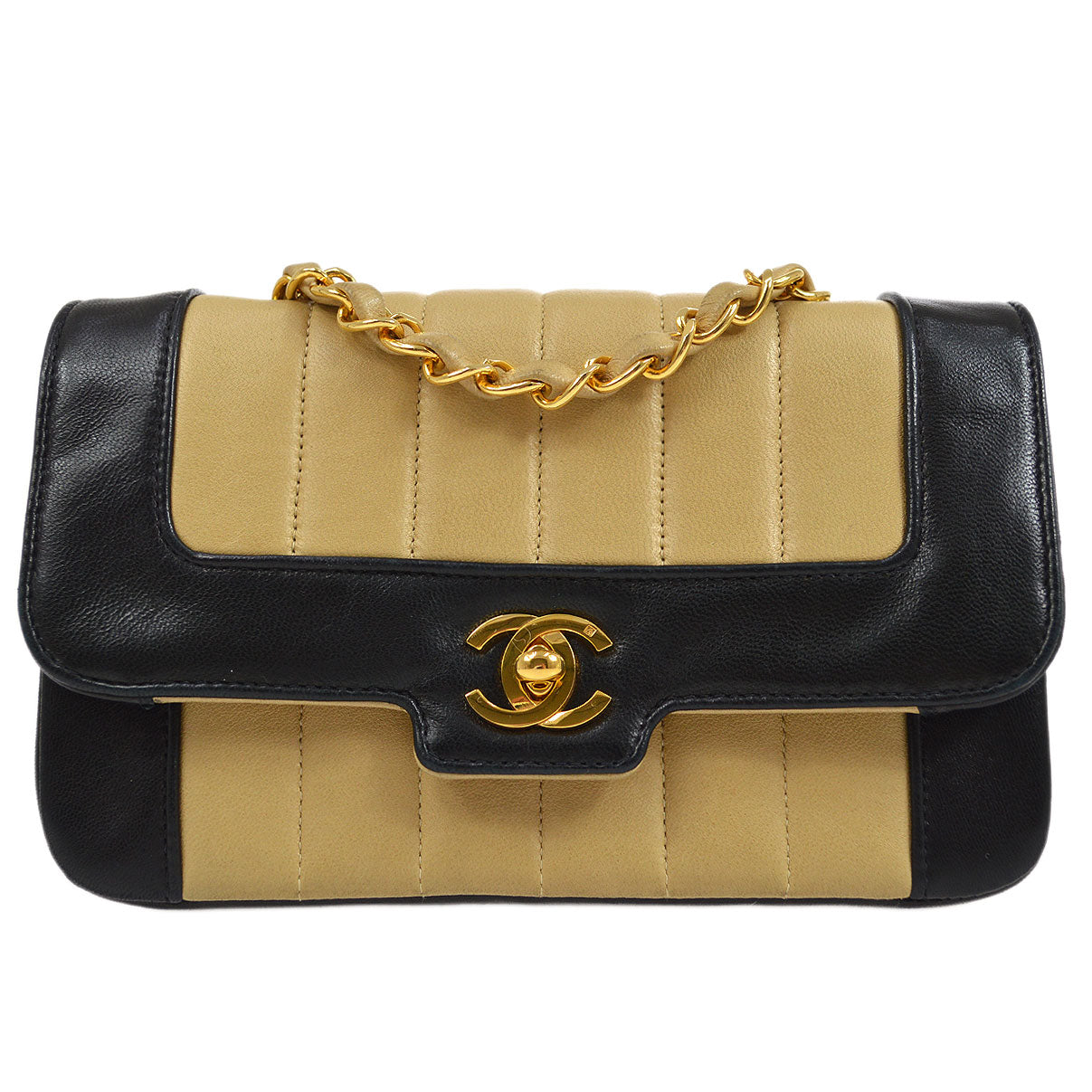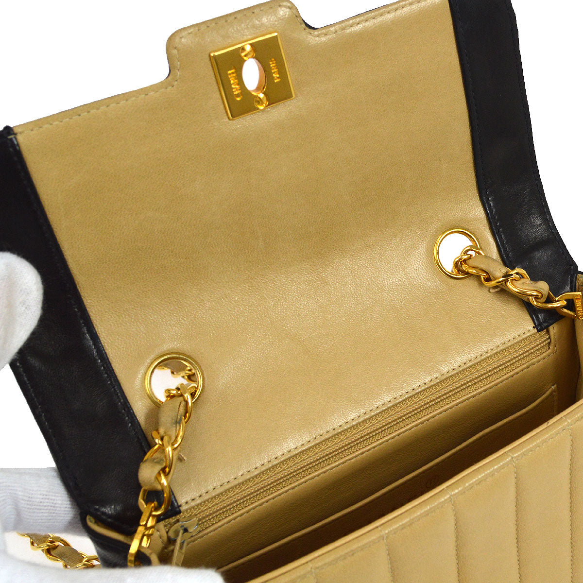 Chanel? 1993 Vertical Border Flap Mini Beige Black Lambskin 64721
