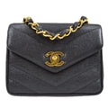 Chanel V-Stitch Classic Flap Mini Square Shoulder Bag Caviar