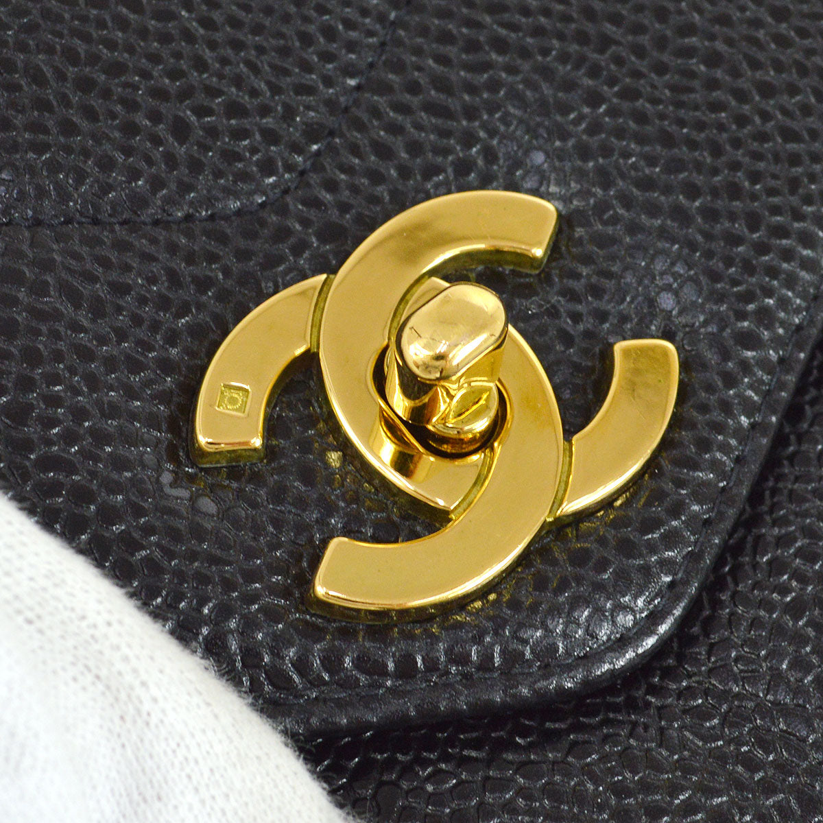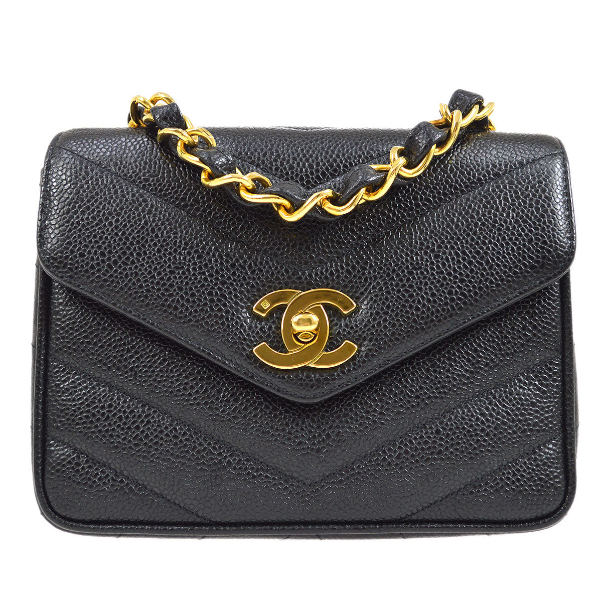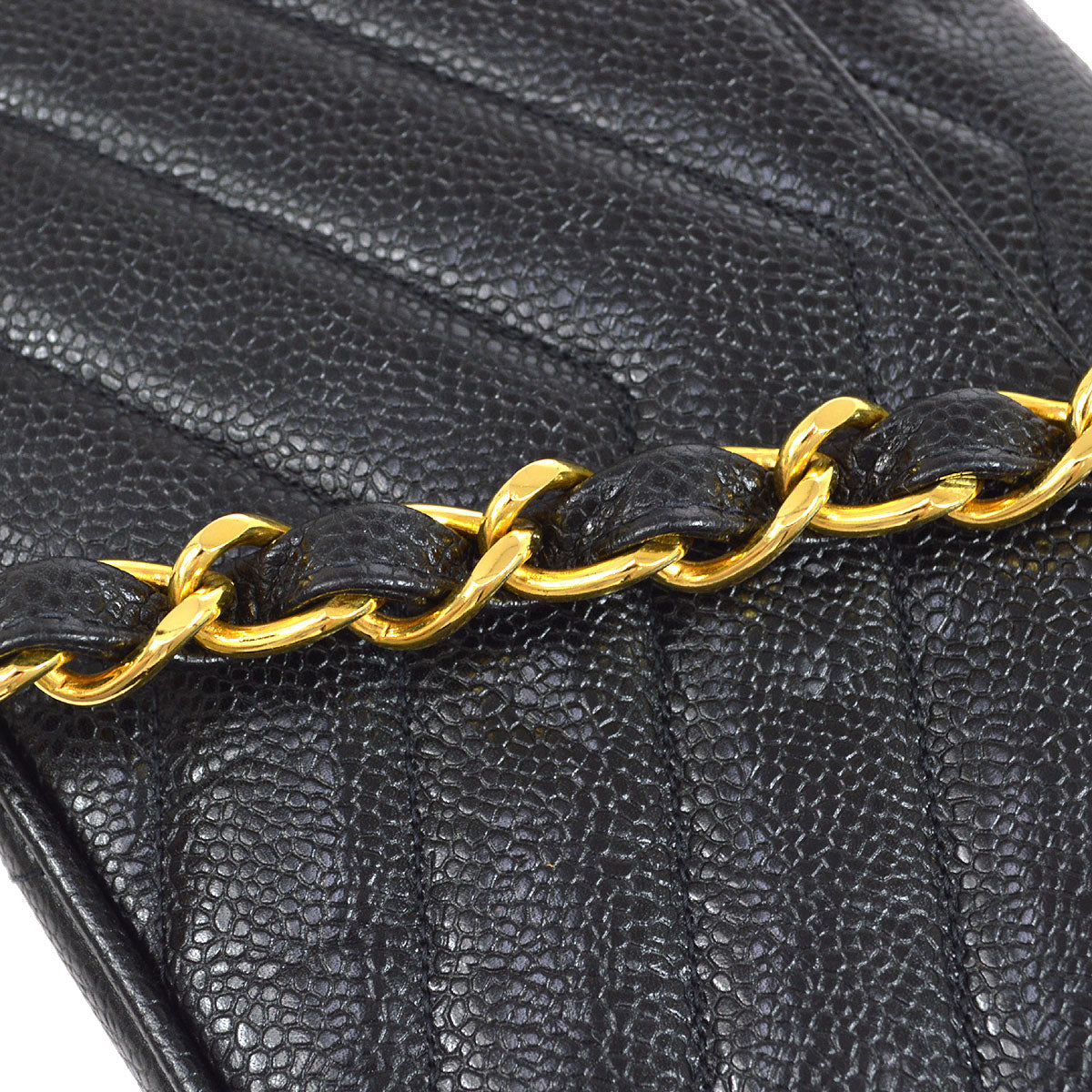 Chanel? 1994-1996 Black Caviar Chevron Letter Flap Bag 75337