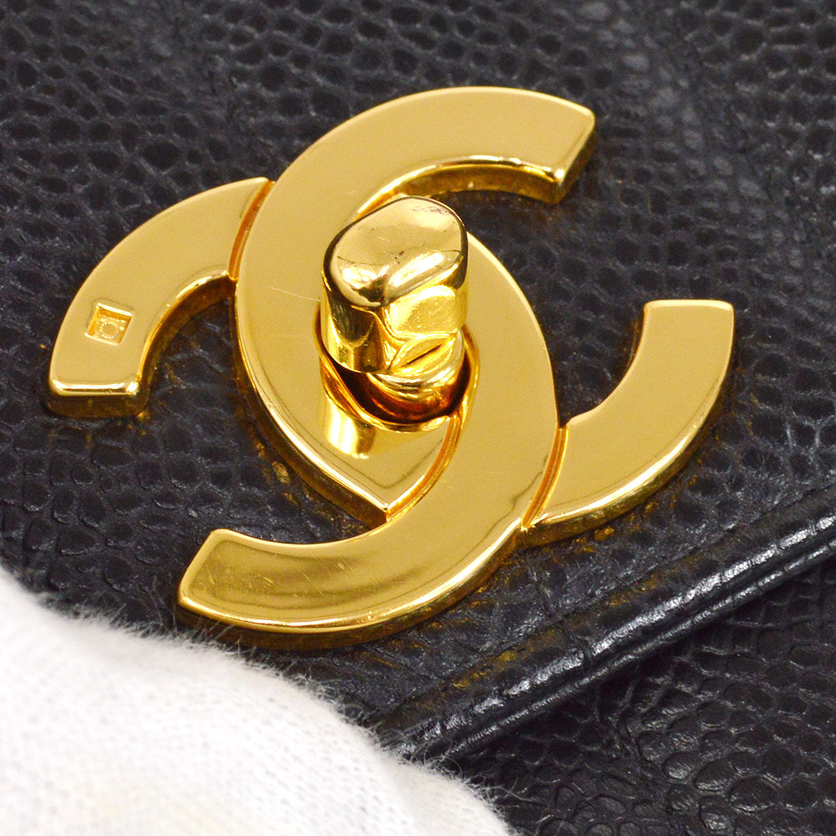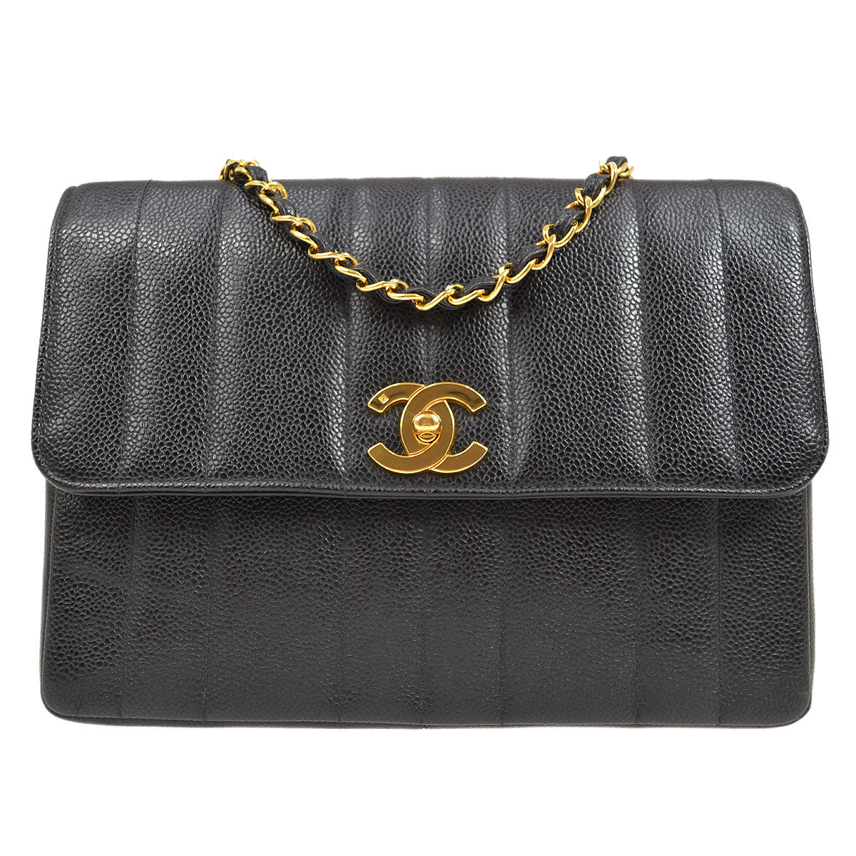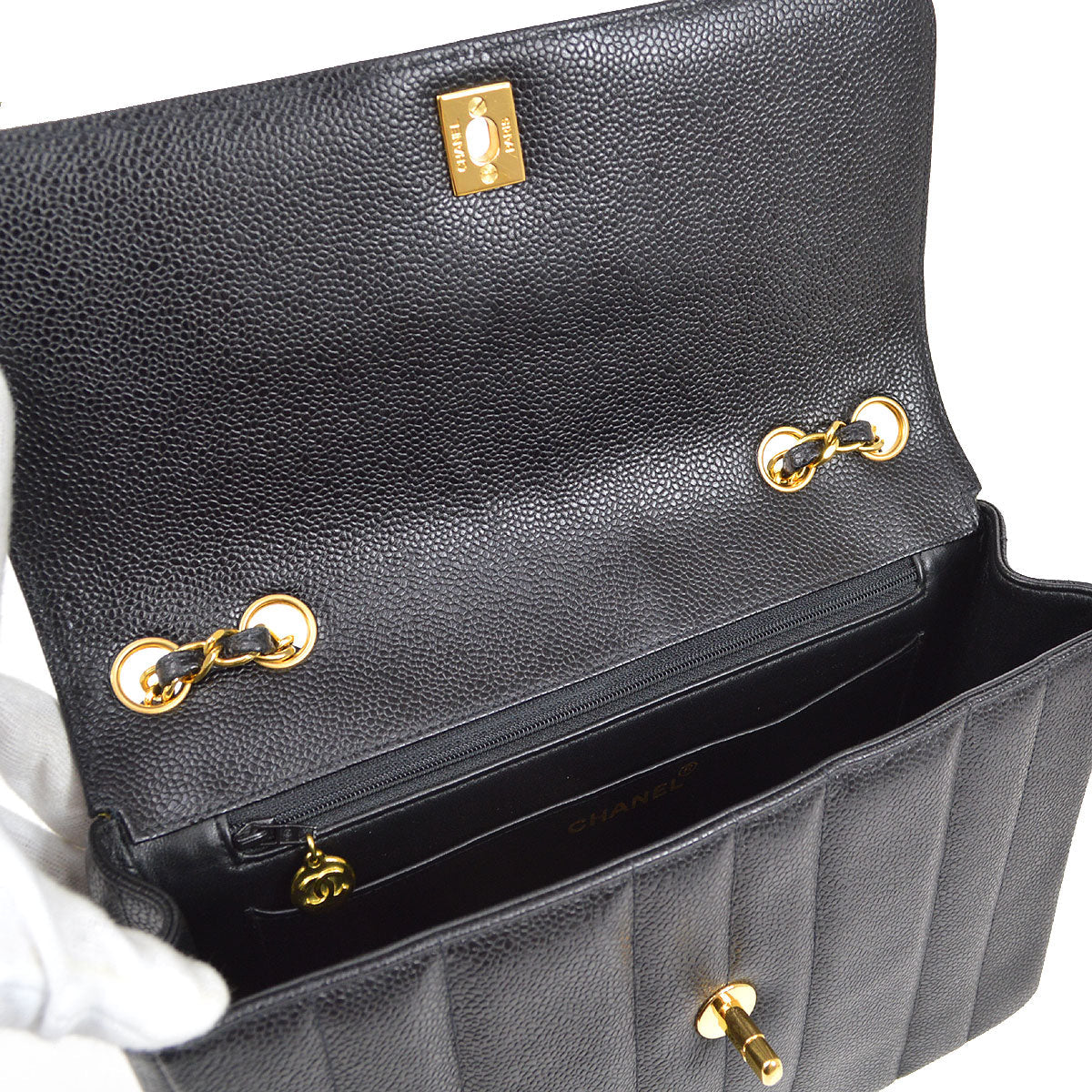 Chanel? 1994-1996 Black Caviar Vertical Straight Flap Medium 84568