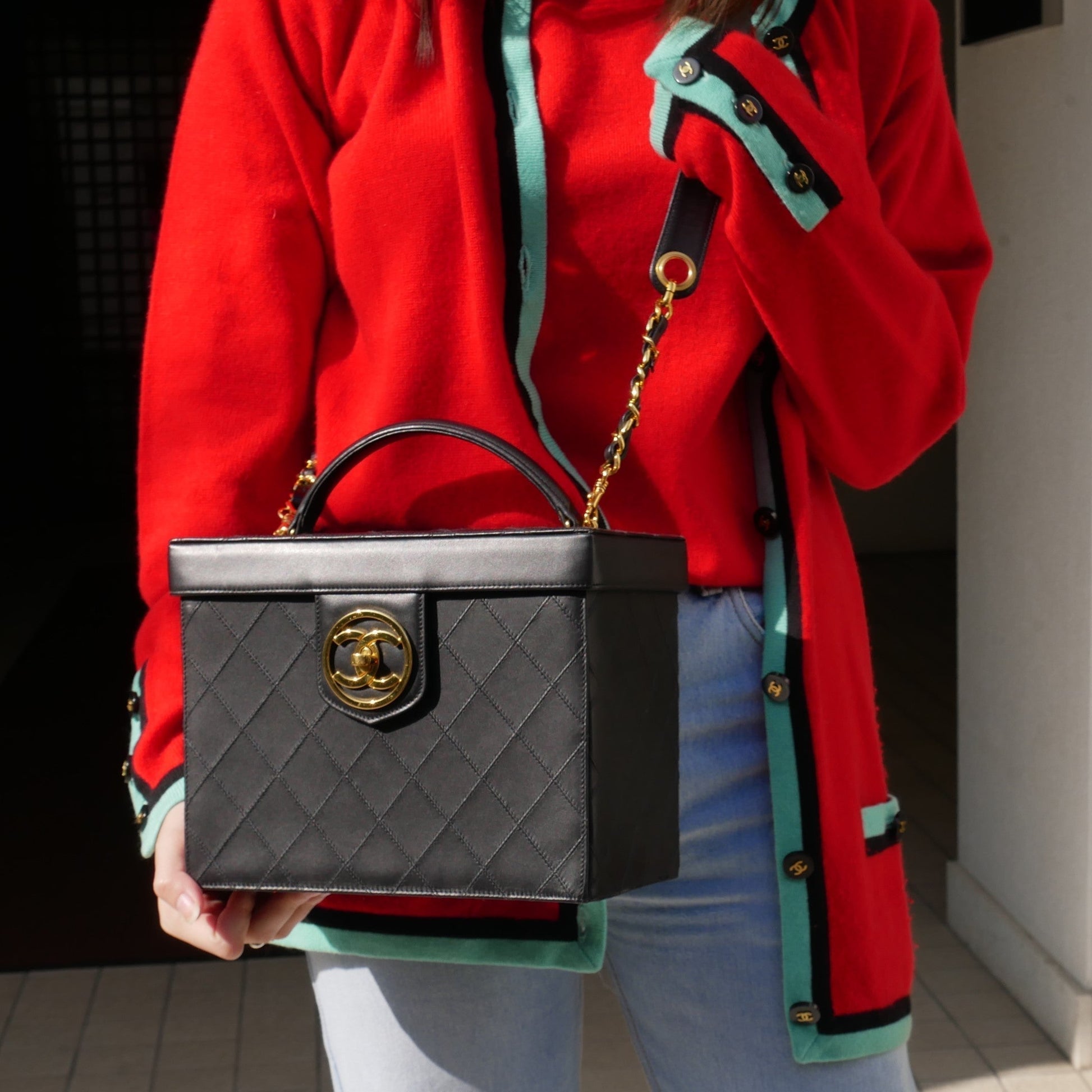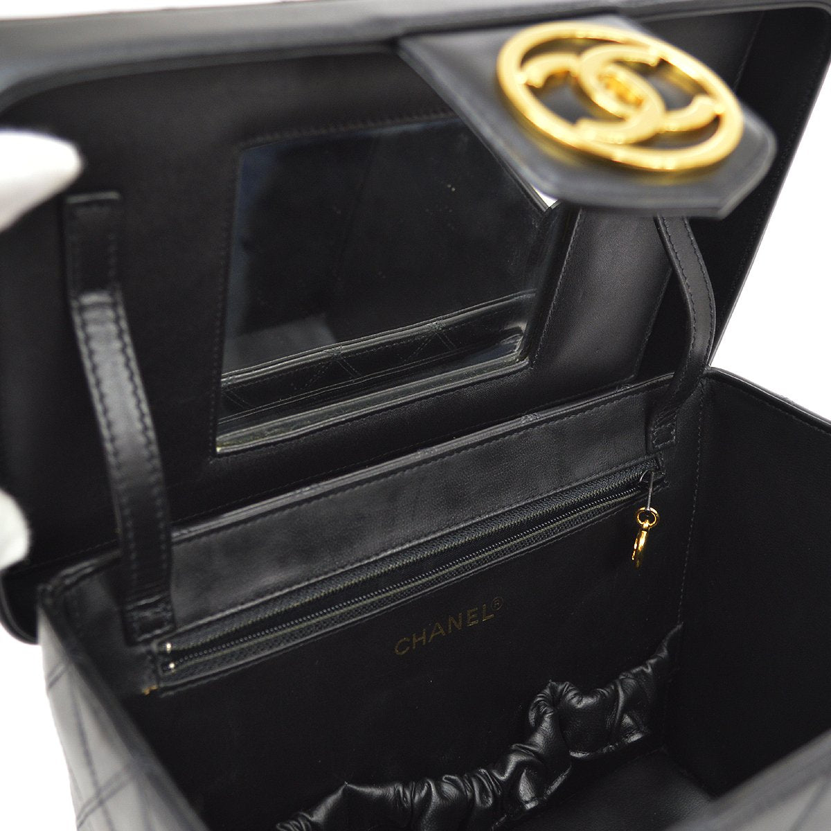 CHANEL 1994-1996 Black Lambskin Cosmoline 2way Vanity Bag AK17189d