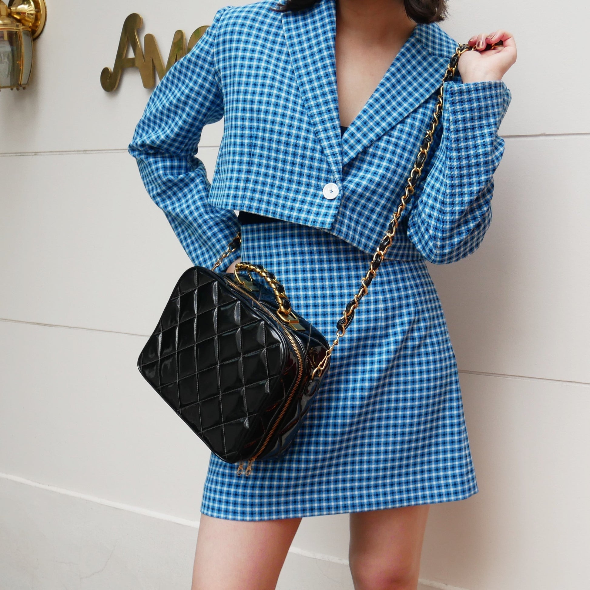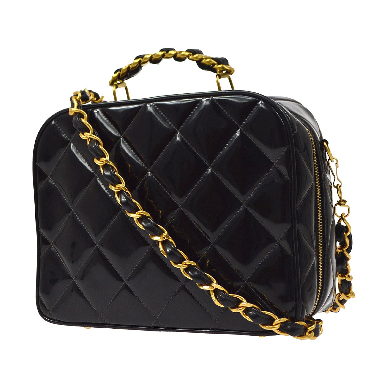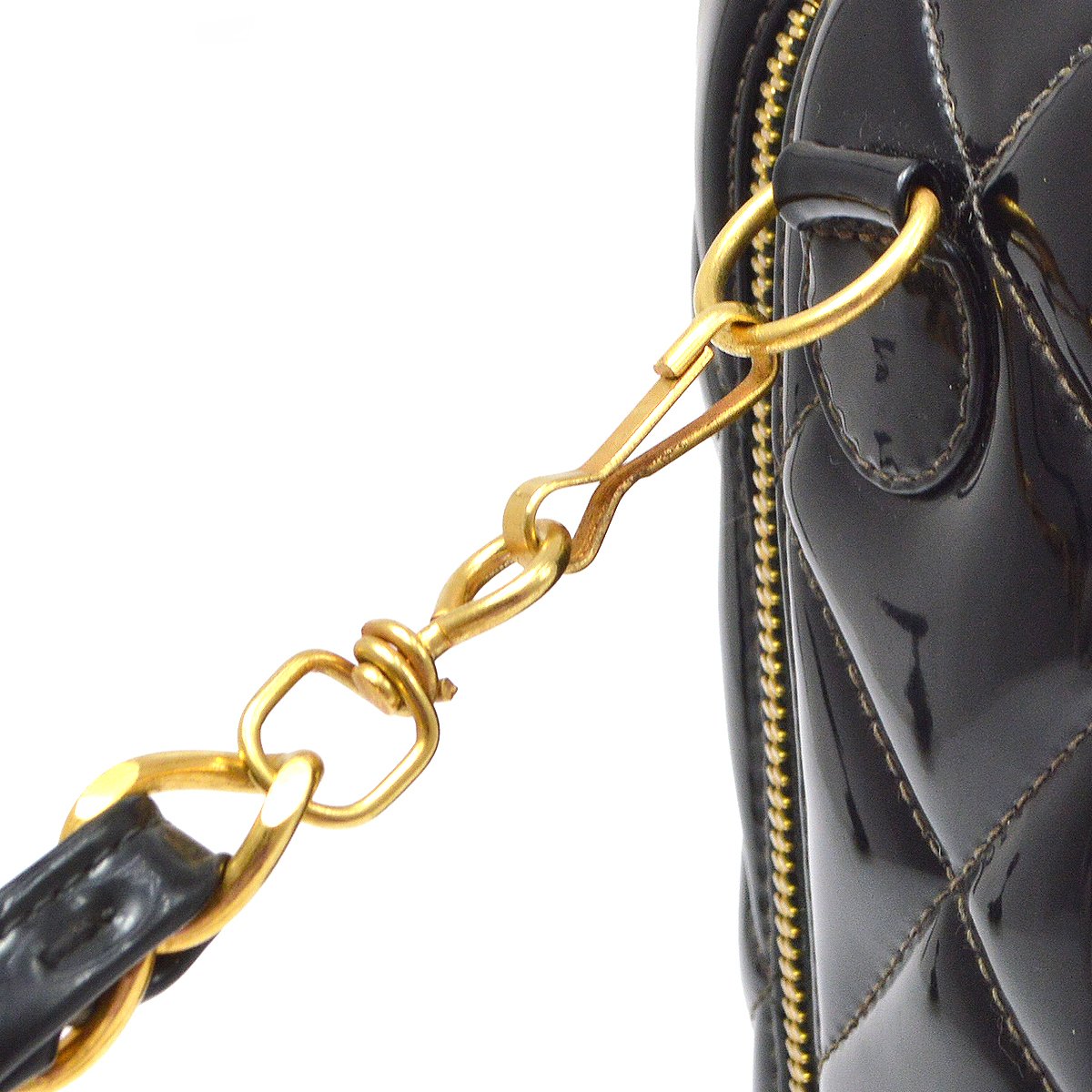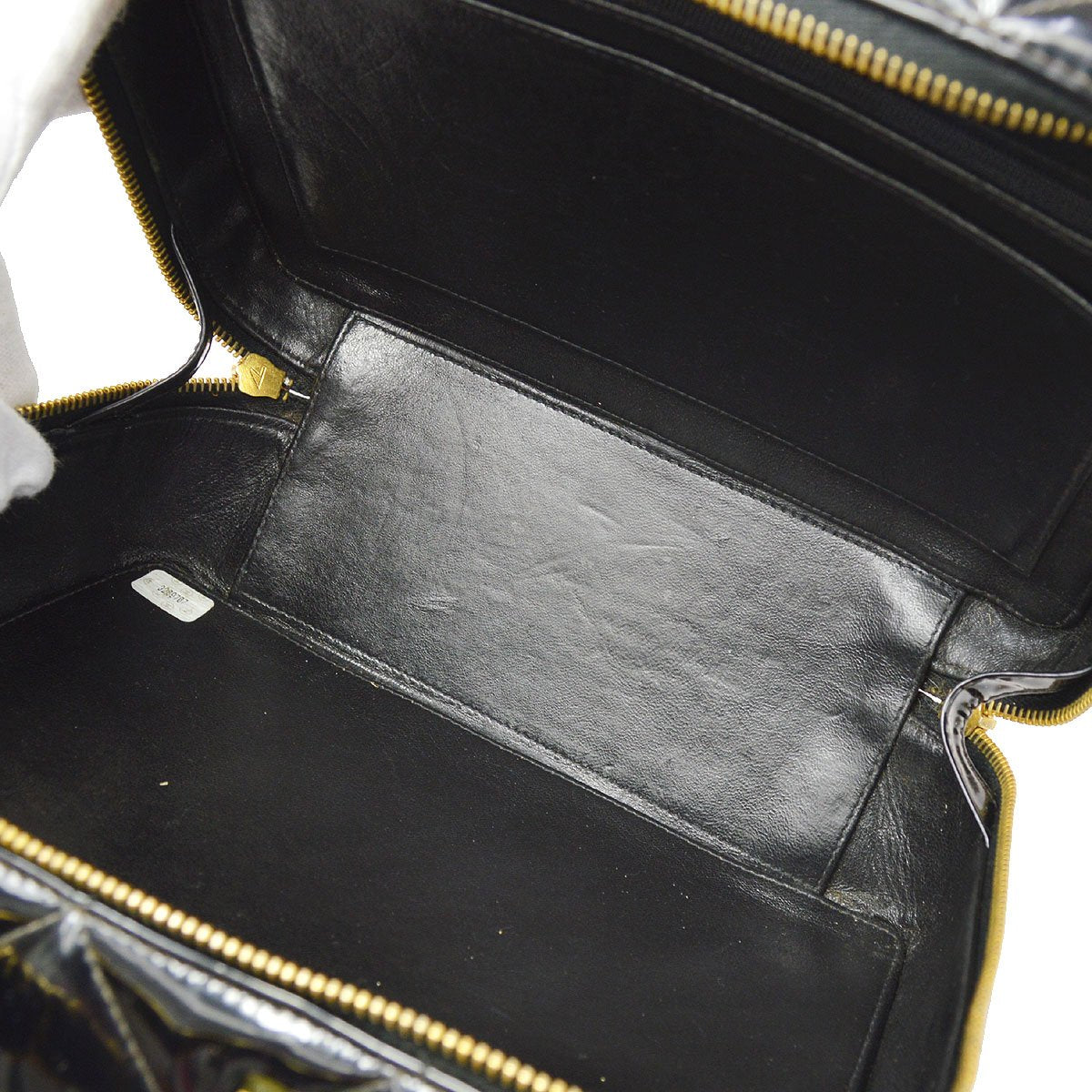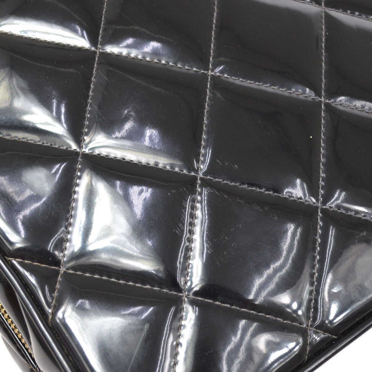 CHANEL 1994-1996 Black Patent Leather Quilted 2way Bag Medium AK38569i