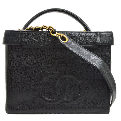 CHANEL 1994-1996 Circled CC Vanity Handbag Black Caviar ao08211