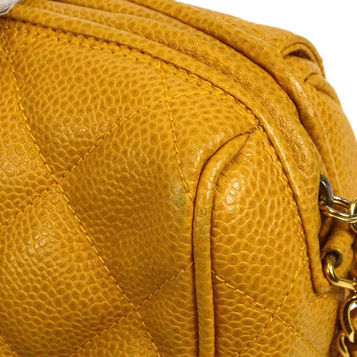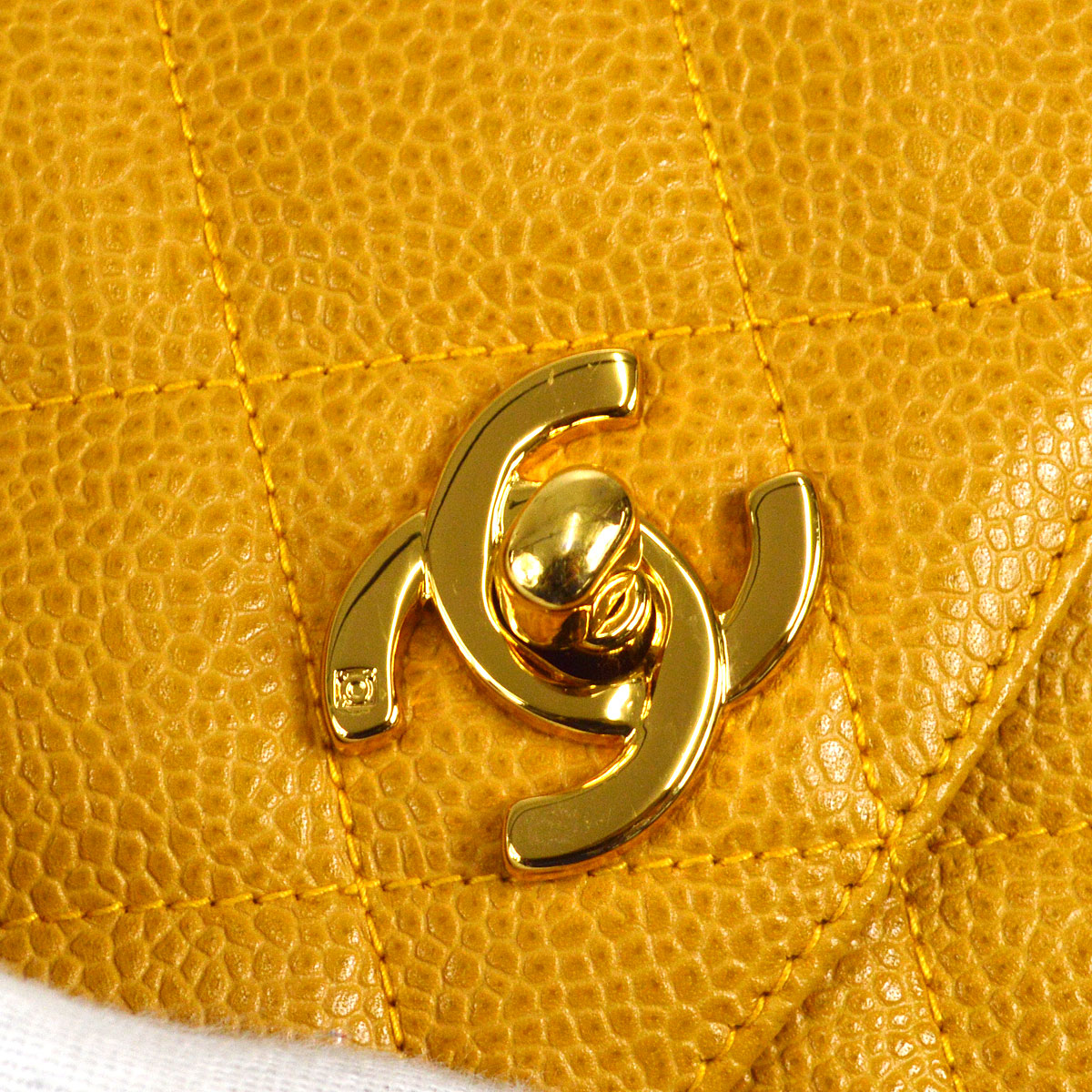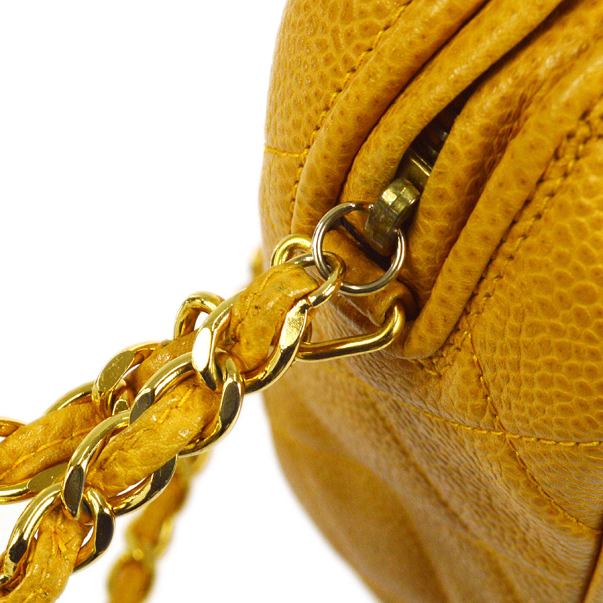 CHANEL Chain Shoulder Bag Yellow Beige Caviar