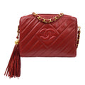 CHANEL Fringe Single Chain Shoulder Bag Red Lambskin