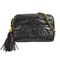 CHANEL Triple CC Fringe Chain Shoulder Bag Black Lambskin