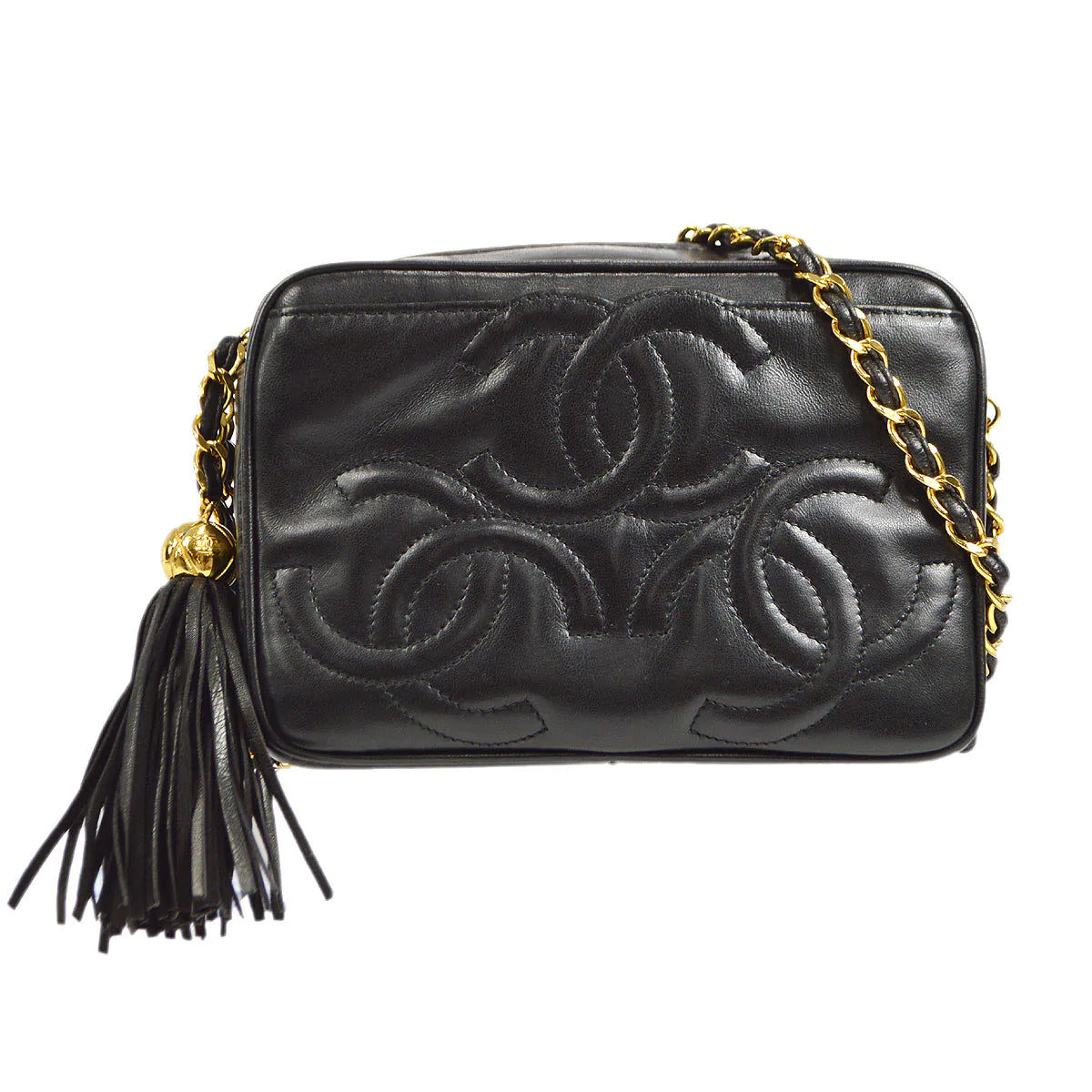 CHANEL 1994-1996 Triple CC Camera Bag Mini Black Lambskin 46417
