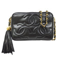 CHANEL Triple CC Fringe Chain Shoulder Bag Black Lambskin